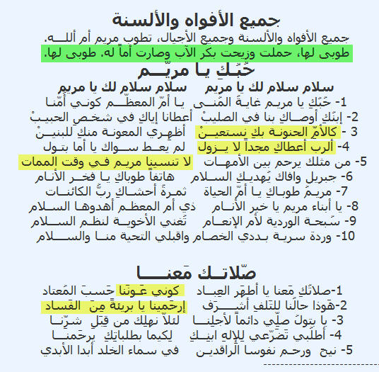 هذه بعض الفقرات من موقع الكنيسة الكاثوليكية في الإسكندرية عن إكرامهم لمريم اللاهوت المريمي (الماريمولوجي) http://www.kalemasawaa.com/vb/attach...1&d=1306228562 وعندهم صلوات لمريم وصوم (صوم العذراء) وشهر يمجدونها فيه (شهر مايو) وهذه بعض صلواتهم لمريم http://www.kalemasawaa.com/vb/attach...1&d=1306229019 http://www.kalemasawaa.com/vb/attach...1&d=1306229019 http://www.coptcatholic.net/section....Q9MjQ2Ng%3D%3D وهناك صلاة المسبحة الوردية وهذا جزء منها "Hail, Holy Queen, Mother of Mercy, hail, our life, our sweetness, and our hope! To thee do we cry, poor banished children of Eve! To thee do we send up our sighs, mourning and weeping in this vale of tears. Turn then, most gracious advocate, thine eyes of mercy toward us; and after this, our exile, show us the blessed fruit of thy womb, Jesus. O clement, O loving, O sweet Virgin Mary!" http://www.vatican.va/special/rosary...minosi_en.html ومن يصليها له وعود تحققها له السيدة مريم كما يعتقدون http://www.kalemasawaa.com/vb/attach...1&d=1306229019 http://www.coptcatholic.net/section....Q9NjE1OQ%3D%3D http://www.catholicchurch-eg.com/catholicchurch/frontf.php/2011/05/02/850.html وبعد كل ذلك يقولون إنهم لا يعبدونها ولكنه تكريم لها وأنها تشفع لهم فقط!!!! ______________ اعتراف قس كاثوليكي بعبادة مريم http://www.youtube.com/watch?v=57tNMfnXf60 الأب بولس جورج : الكاثوليك يعبدون العذراء و عندهم شىء اسمه العبادة المريمية http://www.youtube.com/watch?v=8jypnZ__jdY الأنبا رافائيل : الكاثوليك يعبدون السيده مريم حتى يومنا هذا http://www.youtube.com/watch?v=eaGYmLKGhU4 _____________________ حتى الأرثوذكس استمعوا إلى صلواتهم لمريم http://www.youtube.com/watch?v=LuXQsH2r1bo وهي منتشرة في منتدياتهم يقولون فيها اقتباس: