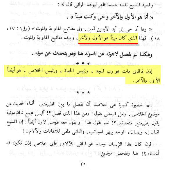 و علشان جون ما يزعلش هزود لك فى الكتاب إضافات حلوة ، خصوصاً عن موضوع الرؤيا و تفنيد الأعداد الخاصة بـــ (الأول و الآخر ) رغم انها مفندة أمامك ، و كذلك العدد الخاص بــ (الفاحص الكلى و القلوب) إنتظر مفاجآت يا جون . و إن شاء الله سيتناول الكتاب نصوص يستدل بها النصارى و لم يذكرها هذا الجون . |