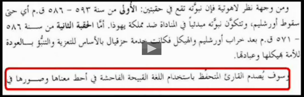 {أَمْ تَحْسَبُ أَنَّ أَكْثَرَهُمْ يَسْمَعُونَ أَوْ يَعْقِلُونَ إِنْ هُمْ إِلَّا كَالْأَنْعَامِ بَلْ هُمْ أَضَلُّ سَبِيلاً }الفرقان44 ............................ أبوهم متى المسكين يقول في كتابه (النبوة والأنبياء في العهد القديم (صــ 227:226) ما نصه : ((و سوف يصدم القارئ المتحفظ باستخدام اللغة القبيحة الفاحشة في أحط معناها و صورها في مخاطبة أهل إسرائيل أربعة وعشرون إصحاحًا يفتتح بهم حزقيال نبوته عليهم فيها كل وساخة الزنا ، وفحشاء الإنسان... )) و على هذا الرابط تجد فيديو يفصل ذلك : http://www.kalemasawaa.com/vb/89175-post1.html http://www.kalemasawaa.com/vb/attach...1&d=1334471515 اقتباس: