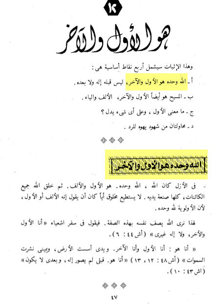 بالطبع نحن لا ننكر ان المسيح هو انسان ولا ننكر ايضا انه هو الله . لو كنتم قد عرفتموني لعرفتم ابي ايضا.وتوجد ايات تثبت انه انسان مثلنا تماما ماعدى الخطية مثل هذه الاية التي تقتبسها اما الايات التي تثبت لاهوته فهي لا تقبل الجدال ايضا مثل هذه على سبيل المثال سأعرضها لك مرة اخرى واطالبك بالتفسير لهذه الايات التي لا تقبل الجدال والتحايل. ومن الان تعرفونه (تعرفون الله )وقد رايتموه (رأيتم الله)...يو14-6 ومن الان تعرفونه وقد رايتموه ومن الان تعرفونه وقد رايتموه ومن الان تعرفونه وقد رايتموه اذن المسيح اعلن بكل وضوح انه هو الله الظاهر في الجسد .. وايضا المسيح اعلن انه يحمل جميع خصائص الله وصفاته . حينما قال كل ما للاب هو لي يو 16-5 وكلمة كل تشمل جميع ماهو لله .!! وكل ما هو لي فهو لك.وما هو لك فهو لي يو17-10 اي كل ماهو لله من خصائص وصفات الوهية وكلي القدرة وعالم بكل شيء الخ من صفات خاصة بالله فهي للمسيح ايضا ولا ينقص عنه شيء لكونه هوالله وايضا لكي يكرم الجميع الابن كما يكرمون الاب يو5-23 وما هو هذا الاكرام الا السجود والعبادة وان نحب الله بكل فكرنا وقلبنا وقدرتنا ونعطي لله كل ما عندنا من نظرتنا له كألله .؟؟؟ الله الاول والاخر هكذا يقول الرب ملك اسرائيل وفاديه رب الجنود.انا الاول وانا الاخر ولا اله غيري اش 44-6 اسمع لي يا يعقوب واسرائيل الذي دعوته.انا هو.انا الاول وانا الاخر اش 48-12 من فعل وصنع داعيا الاجيال من البدء.انا الرب الاول ومع الاخرين انا هو اش 41-4 لكي تعرفوا وتؤمنوا بي وتفهموا اني انا هو.قبلي لم يصور اله وبعدي لا يكون.اش 43-10 انا الرب وليس اخر.لا اله سواي.نطقتك وانت لم تعرفني. 6 لكي يعلموا من مشرق الشمس ومن مغربها ان ليس غيري.انا الرب وليس اخراش 45-5 .اليس انا الرب ولا اله اخر غيري.اله بار ومخلص.ليس سواي. 22 التفتوا الي واخلصوا يا جميع اقاصي الارض لاني انا الله وليس اخر. ثم قال لي قد تم.انا هو الالف والياء البداية والنهاية.انا اعطى العطشان من ينبوع ماء الحياة مجانا. رؤ12 -6 ويقول السيد المسيح عن نفسه: انا هو الالف والياء البداية والنهاية يقول الرب الكائن والذي كان والذي ياتي القادر على كل شيء رؤ 1-8 واكتب الى ملاك كنيسة سميرنا.هذا يقوله الاول والاخر رؤ2-8 انا هو الالف والياء.الاول والآخر.والذي تراه اكتب في كتاب وارسل الى السبع الكنائس رؤ 1: 11 فلما رأيته سقطت عند رجليه كميت فوضع يده اليمنى عليّ قائلا لي لا تخف انا هو الاول والآخر رؤ 1: 17 12 وها انا اتي سريعا واجرتي معي لاجازي كل واحد كما يكون عمله. 13 انا الالف والياء.البداية والنهاية.الاول والاخر.رؤ22-12 الله فاحص القلوب والكلى فاحص القلوب والكلى الله البار مز 7: 9 انا الرب فاحص القلب مختبر الكلى لاعطي كل واحد حسب طرقه حسب ثمر اعماله. 11 ار 17-10 فاسمع انت من السماء مكان سكناك واغفر واعمل واعط كل انسان حسب كل طرقه كما تعرف قلبه لانك انت وحدك قد عرفت قلوب كل بني البشر (1مل8-27) ويقول المسيح عن نفسه واولادها اقتلهم بالموت فستعرف جميع الكنائس اني انا هو الفاحص الكلى والقلوب وساعطي كل واحد منكم بحسب اعماله رؤ2-23 ممكن حضرتك تتكرم وتوضح لي معنى هذه الايات...؟؟؟؟؟ |
