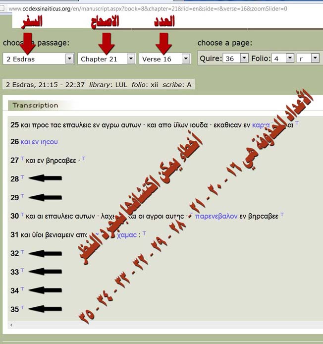 هذا رابط الترجمة العربية المشتركة و تجد أن 2 كورنثيوس 13 ينتهي عند العدد رقم 13 و لا يوجد رقم 14 http://albishara.org/readbible.php?r...cyWXJZcVEuLg.. http://www.kalemasawaa.com/vb/attach...1&d=1332760919 و هذا رابط الترجمة الكاثوليكية و تجد أن 2 كورنثيوس 13 ينتهي عند العدد رقم 13 و لا يوجد رقم 14 http://albishara.org/readbible.php?r...cyWXJZcVEuLg.. http://www.kalemasawaa.com/vb/attach...1&d=1332760653http://www.kalemasawaa.com/vb/attach...1&d=1332760998 و هذا رابط الترجمة البولسية و تجد أن 2 كورنثيوس 13 ينتهي عند العدد رقم 13 و لا يوجد رقم 14 http://albishara.org/readbible.php?r...cyWXJZcVEuLg.. http://www.kalemasawaa.com/vb/attach...1&d=1332760676 |