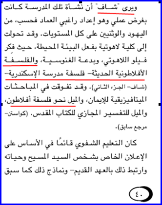 هل تتوقع أن يخرج كتاب "مسيحي" من كاتب "مسيحي" يقول لايوجد شئ إسمه تثليث؟ ستحكمون فوراً عليه بالهرطقة،بالطبع كل المراجع ستقول هناك تثليث؛لأنهم يُفسرون النصوص على مزاجهم،والمعيار الحقيقي،هل فعلاً يوجد نصوص تشهد للثالوث أم لا وهذا بالبحث.. . . . 3- التعليق على جزئية أفلوطين وفضح القمص عبد المسيح بسيط . .. . بعدما أثبت أن عقيدة النصارى مُقتبسة من فلسفة أفلوطين،والذي هو تلميذ أفلاطون،وأثبت كلامي بمراجع مسيحية وأقوال علماء مسيحيين وسأعيدها الآن مرة أخرى لنُحكم الخناق على النصراني الذي يقول :- اقتباس: