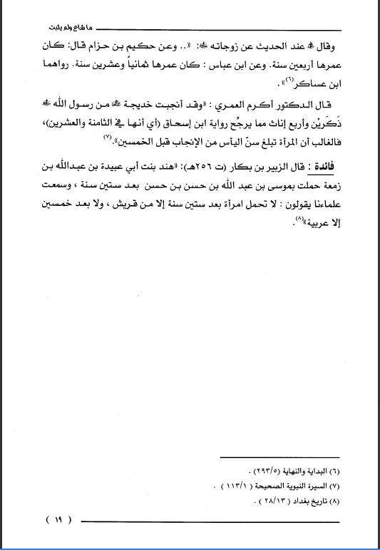 (مراجع أخرى: المعجم الكبير ج 22 ص 444 / المستدرك على الصحيحين ج 3 ص 200 / سنن البيهقي الكبرى ج 7 ص 70 / الآحاد والمثاني ج 5 ص 380). هذا عمر رسول الاسلام وعمر زوجته وقت الزواج |