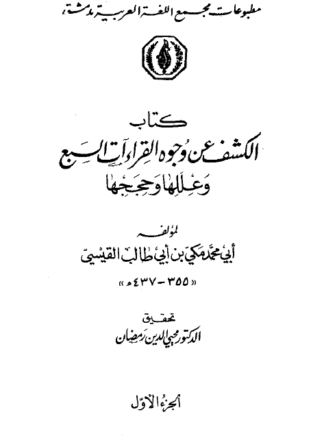كتاب ( الكشف عن وجوه القراءات وعللها ) لمؤلفه مكي بن أبي طالب القيسي ..رحمه الله تعالى .. وهو من افضل الكتب التي عُنيت بالقراءات .. وتوجيهها وتفصيل عللها ووجوهها النحوية .. |