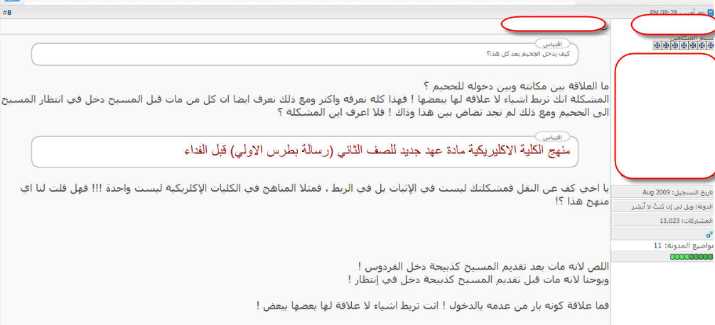 نقف هنا بقي شوية علشان الكلام حيحلوا طبعا انا كنت فاكره محترم وباحترمه انما ابو جهل فاتح موضوع طويل عريض وبيقولك لما انا اقول يصح فلا يجوز انت تقول لا يصح ليييييييييييييييييييييييييييه يا ###؟؟؟؟؟؟؟؟؟؟؟؟ علشان عيب طيب صدق ولابد ان ت ايييييييييييييييييييييييه؟ تصدق نشوف ### واضحك مع #### دخلت منتداهم وسالت كيف يدخل يوحنا المعمدان افضل مخلوق من الرجال الجحيم فور موته شهيدا ؟ http://www.kalemasawaa.com/vb/attach...1&d=1314271779 رد #### بتاع لما يقول يبقي عيب كله دخل الجحيم برافو يا ##### ده انت حكاية http://www.kalemasawaa.com/vb/attach...1&d=1314271966 بيتسائل ما علاقة كونه بار من عدمه بدخوله الجحيم؟عادي جدا هو افضل مولود يدخل الجحيم واللص يدخل الفردوس ده عادي انا اللي مش فاهم؟ ولما ### يقول دخل يبقي اييييييييييييييييييه ؟ دخل طبعا وبيحذرني من النقل والتصوير وكدة http://www.kalemasawaa.com/vb/attach...1&d=1314272132 وضحته له الموضوع تاني علشان تقريبا عنده مشاكل نفسية http://www.kalemasawaa.com/vb/attach...1&d=1314272229 المقياس في دخول الفردوس والنجاة من الجحيم ليس له علاقة بالنبوة والايمان بالمسيح ولا اي حاجة هو اللي جاء بعد المسيح وان كان لص او برسوم علي الفردوس حدف واللي قبله ولوكان موسي او المعمدان علي الجحيم حدف؟ والاله عادل حكيم محب من البدء للنهاية و### لما يقول حاجة يبقي خلاص عيب حد يراجع وراه http://www.kalemasawaa.com/vb/attach...1&d=1314272421 http://www.kalemasawaa.com/vb/upload...1314272565.jpg ولسة مصر انه كله دخل الجحيم وانا ما بافهمش وكدة وبعدين ### بيهددني باغلاق الموضوع ومستعجب بين اني باربط بين صلاح الانبياء ودخولهم الجحيم مع فساد من جاءوا بعد المسيح ودخلوا الفردوس ولا يري تعارض مع عدل الله وبيسالني ايه سؤالي؟ http://www.kalemasawaa.com/vb/upload...1314272783.jpg وبعدين بدات تظهر عليه علامات العبقرية http://www.kalemasawaa.com/vb/upload...1314272889.jpg شفت بقي المعمدان دخل الجحيم علشان المسيح اعظم منه؟ الله يخرب بيت المجانية اللي بتدخلكوا مدارس معانا http://www.kalemasawaa.com/vb/upload...1314273040.jpg فهمته الموضوع تاني يمكن يجمع http://www.kalemasawaa.com/vb/upload...1314273154.jpg http://www.kalemasawaa.com/vb/upload...1314273297.jpg وقعد يخرف ويهذي بكلام غير مفهوم http://www.kalemasawaa.com/vb/upload...1314273417.jpg وبعدين هرب الي غير رجعة :36_1_12: و#### اييييييييييييييييييييه ؟ لما يقول حاجة يبقي عيب حد يراجعه ده #### يا جدعان دخل مديره لقي الكارثة http://www.kalemasawaa.com/vb/upload...1314273572.jpg شرح الحكاية للخروف #### ولباقي الخرفان وطلب منهم يخرسوا http://www.kalemasawaa.com/vb/upload...1314273791.jpg وكله يقرا في ميكي جيب؟ قصدي الكتاب بتاعهم علشان يشوف الانبياء كانوا فين ؟ http://www.kalemasawaa.com/vb/upload...1314273683.jpg ويعلن بكل وضوح الجحيم لا يمكن ابدا ان يكون مكانا للابرار يغلق الموضوع سترا للفضيحة http://www.kalemasawaa.com/vb/upload...1314274279.jpg ولا يهمك يا #### انسي انت جامد قوي الرب يباركك وبعدين هنا باتناظر مع الخروف التاني فاستغاث ب#### http://www.kalemasawaa.com/vb/upload...1314274455.jpg فاكره بيعرف يقرا اصلا و###### ايييييييييييييييييييييييييييييييييه ؟ لما يقول حاجة يبقي لازم الكل يبصم وراه بس المشكلة هو بصمجي نقل موضوع افتكر انه بيدافع عن ميكي جيب اقصد كتابه فاثبت وقوع التحريف بصورة نهائية وطبعا ### لما يقول محرف يبقي اييييييييييييييييييييه؟ يبقي محرف شبهات إسلامية و ردود مسيحية #### رد دانيال والاس على تخريفات بارت ايرمان ( الإنجيل بحسب بارت ايرمان ) ترجمة فادي اليكسندر آخر إثنى عشر عدداً فى مرقس و قصة الزانية فى نفس الوقت، فإن ايرمان يُشير الى موضوع صحيح. إن اي مراجعة عملية لأى ترجمة إنجليزية اليوم، تكشف ان الخاتمة الأطول لمرقس و قصة الزانية، موجودين فى أماكنهم المُعتادة. هكذا، ليس فقط نُسخة الملك جيمس و نُسخة الملك جيمس الجديدة بهم المقاطع (كما يُمكن ان يُتوقع)، لكن كذلك النُسخة الأميركية القياسية، النُسخة المُنقحة القياسية، النُسخة المنقحة القياسية الجديدة، النسخة الدولية الحديثة، النسخة الدولية الحديثة اليوم، الكتاب المقدس الأميركى القياسى الجديد، النسخة الإنجليزية القياسية، النسخة الإنجليزية اليوم، الكتاب ال