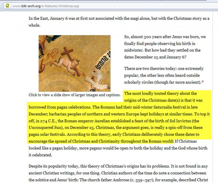ثم استبدل قسطنطين إلهه الوثني سول إنفكتس بيسوع وأطلق على ديانته الجديدة "الكاثوليكية" وذلك في مجمع نيقية 325 م وتؤكد ذلك هذه المجلة المتخصصة في الآثار والحضارة في الكتاب المقدس http://www.kalemasawaa.com/vb/attach...1&d=1327797864 http://www.bib-arch.org/e-features/christmas.asp الترجمة باختصار : أن أرجح النظريات للاحتفال بالكريسماس (ميلاد يسوع النصارى) في 25 ديسمبر هو الأصل الوثني المأخوذ من عيد سول إنفكتس والذي كان يحتفل به الرومان الوثنيون ___________________________ شموس الرب كريشنا وبوذا ويسوع النصارى http://www.kalemasawaa.com/vb/attach...1&d=1327798361 http://books.google.com.eg/books?id=...%20god&f=false |