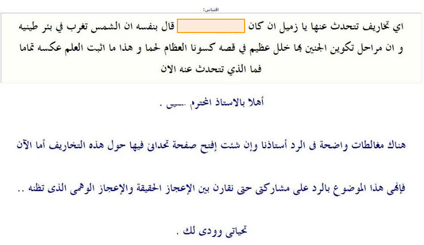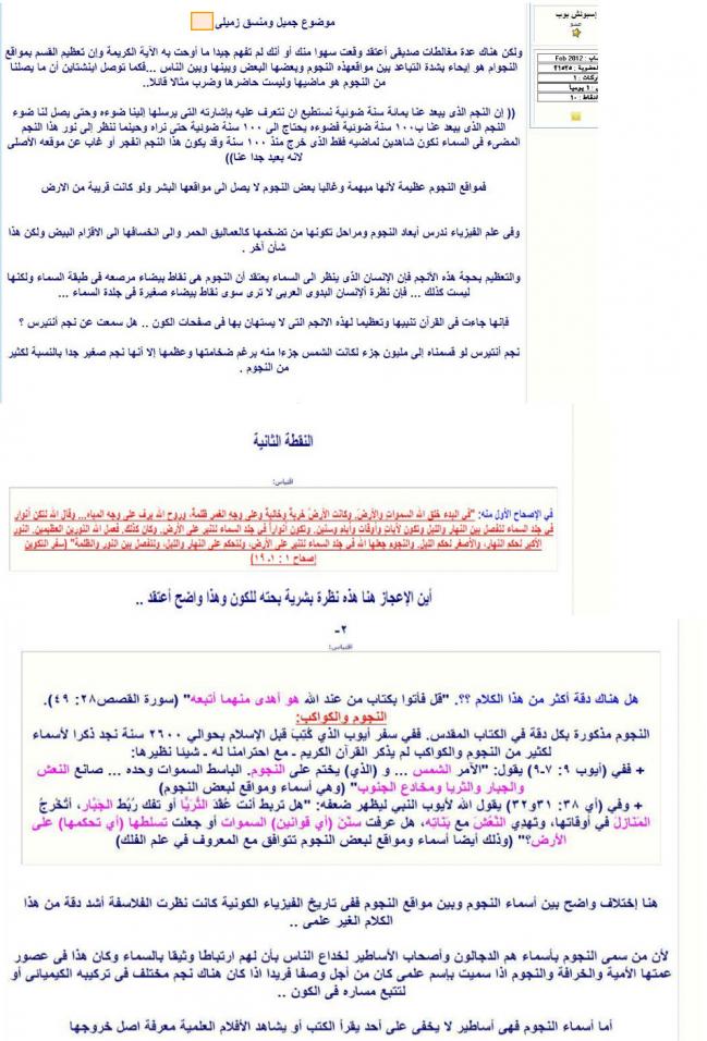 السـلام على من إتبع الهـدى . النصارى ينقدون الإعجاز العلمى فى القرآن الكريم .. ليس لدى تعليق أكثر من ذلك .. النصارى تناسو أنهم منذ عهد قريب كان كتابهم المقدس هو سبب أبشع مذبحة فى التاريخ ... أو يمكن القول (أبشع محرقة للعلماء) .:36_2_35: واليوم ينقلون شبهات من كتب المنصر وليم كامبل الذى صفعه د/زاكر نايك فى أروع مناظراته فى 2005 ..وينقلون الشبهات من مواقع الملاحدة الذين يحرفون الكلم عن موضعه ... دخلت الى منتدياتهم وسجلت وجدتهم يهللون ويرقصون ويسبون ويقذفون ..هل لهم حجة دفعتهم الى ذلك ؟ ربما ! تمتعو برؤية عجز العاجزين المتطفلين على العلم الذى هرولت إدارة منتداهم بالطرد والسب عندما أحسو بالخطر الذى سيصيب أعضاءهم . الزميل النصرانى المحترم .. لا تخدع نفسك .. وإسألنى ما سبب أن يطرد عضو من منتدى يدعو للحوار وهو يعاملهم بأفضل طرق الأدب والمبالغة فى الإحترام والتوقير ..الذى لا يعامل بها النصرانى للآخر . الإجابة لا بد أن تكون : العجز . اله عاجز ودين عاجز وأتباع عاجزون . فهنيئا لكـم ما إخترتموه سبيلا . والحمد لله إننى أسرعت فى تصوير الموضوع الحوار دار بينى وبين مدير منتدى النصارى . دخل المشرف بموضوعه الكتاب المقدس يفضح زغلول النجار من منا لم يسمع بالدكتور زغلول النجار وكتابه (من آيات الإعجاز العلمي في القرآن الكريم) و قد جاء بالكتاب (ص 37) قول الدكتور النجار عن الإعجاز العلمي للقرآن تحت عنوان "الآيات الكونية" أن: " قضية خلق السموات والأرض التي يتحدث عنها القرآن الكريم في ست آيات محدودة، تحكي قصة الخلق والإفناء، وإعادة الخلق بالكامل في إجمال وشمول ودقة مذهلة على النحو التالي: 1ـ "فلا أُقْسِمُ بمواقعِ النجومِ. وإنه لقسم لو تعلمون عظيم" (الواقعة 75و76) 2ـ "والسماء بنيناها بأيدٍ وإنَّا لموسعون" (الذاريات 47) 3ـ "أو لم ير الذين كفروا أن السمواتِ والأرضَ كانتا رَتْقا ففتقناهما " (الأنبياء30) 4ـ "ثم استوى إلى السماء وهي دخَان ..." (فصلت1) 5ـ "يوم نطوِي السماءَ كَطَيِّ السِّجِلِّ للكتب، كما بدأنا أولَ خلقٍ نُعِيدُهُ وَعْداً علينا إنا كنا فاعِلين" (الأنبياء104) 6ـ "يومَ تُبَدَّلُ الأرضُ غيرَ الأرضِ والسمواتُ" (إبراهيم48) ويعلق الدكتور النجار على ذلك قائلا: [قصة خلق الكون يجمعها القرآن الكريم بدقة متناهية في ست آيات تلخص خلق الكون، وإفنائه، وإعادة خلقه من جديد في إجمال ودقة وإحاطة معجزة للغاية، لم يستطع الإنسان أن يصل إلى تصور شيء منها حتى أواخر القرن العشرين] كتاب (من آيات الإعجاز العلمي في القرآن الكريم ص 45) . إن الميزة الكبيرة لأي عالم هو الأمانة و الصدق أثناء بحثه العلمي ودقة الاستنتاجات لكن د. نجار لم يتميز بهذه الصفات و بعد الإطلاع على قصة خلق الكون و استنتاجاته يخطر ببالك سؤالين : 1.كيف يعمم هذا العالم أنه لم يستطع الإنسان أن يصل إلى تصور شيء منها حتى أواخر القرن العشرين!!!. 2.لماذا لم يبحث في الكتاب المقدس و أقتصر بحثه في القرآن ؟. 3.لماذا لم يبحث في تاريخ علم الفلك. هل عدم بحثه في الكتاب المقدس وكتب الفلك، ناتج عن الجهل بهما ؟ , إن كان كذلك فهذه مصيبة!!! , وإن كان عدم بحثه فيهما ناتج عن تجاهُلِهما، فالمصيبة أفدح!!! . الآية الأولى: "فلا أُقسِمُ بمواقعِ النجومِ. وإنَّه لقَسَمٌ لو تعلمون عظيمٌ" (الواقعة 75و76) يعلق الدكتور النجار على هذه الآية إذ يقول: 1ـ "يعجب الإنسان من القسم المغلظ بمواقع النجوم، والنجوم من أعظم خلق الله في الكون" (من آيات الإعجاز العلمي في القرآن الكريم ص 38). نقول للدكتور النجار الذي أورد في كتابه / قصة خلق الكون التي يقول عنها: لم يستطع الإنسان أن يصل إلى تصور شيء منها حتى أواخر القرن العشرين] ويقول عنها: [قصة خلق الكون يجمعها القرآن الكريم بدقة متناهية في ست آيات تلخص خلق الكون ...] / لنقرأ ما جاء في الكتاب المقدس في سفر التكوين عن خلق الكون الذي كتب قبل الإسلام بحوالي 2000 سنة؟! ,جاء في الإصحاح الأول منه: "في البدء خلق الله السمواتِ والأرضَ. وكانت الأرضُ خربةً وخاليةً وعلى وجهِ الغمرِ ظلمةٌ، وروح الله يرف على وجه المياه.