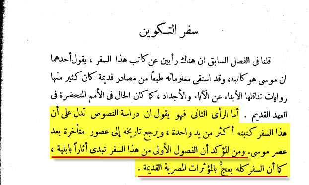يعلم الله تعالى أننا نؤمن بالتوراة التى أنزلها الله تعالى على عبده و رسوله موسي عليه السلام أما العهد القديم فهو ليس التوراة بكل تأكيد ففيه الأسفار الخمس المنسوبة لموسي عليه السلام و فيه أسفار أخرى كتابها مجهولون و لم يسمع عنها موسي عليه السلام فى حياته أصلا فمثلا نشيد الأنشاد ليس من توراة موسي عليه السلام بالطبع و نجد فيه غزل و وصف لثدى المرأة (قامتك هذه شبيهة بالنخلة وثدياك بالعناقيد , قلت: إني أصعد إلى النخلة وأمسك بعذوقها. وتكون ثدياك كعناقيد الكرم ورائحة أنفك كالتفاح ) نشيد الأنشاد 7 / 7 – 8 . و نجد فيه وصف للسرة و المراد الجزء الأسفل من الجسد (سرتك كأس مدورة لا يعوزها شراب ممزوج. بطنك صبرة حنطة مسيجة بالسوسن.) نشيد الأنشاد 7/2 تفسير الكتاب المقدس – الجزء الثالث – لجماعة من اللاهوتيين والمفسرين برئاسة الدكتور فرنسس دانرس – صفحة 430 يقول : ( سرتك : الكلمة العبرية المترجمة سرة تعني عادة الجزء الأسفل من الجسم , وستيوارت يترجمها " بمشبك الحزام " والكأس أجمل شيء عندما تملأ بالخمر ..) http://www.eld3wah.net/html/m03az/im.../inshad-18.jpg ويقول أيضاً يوحنا قمَير في كتابه نشيد الأنشاد أجمل نشيد في الكون صفحة 68 : (سرتك كأس مدورة لا يعوزها شراب ممزوج : الوصف جرئ وتشبيه السرة بكوب لا يفرغ من الخمر يعني الإشارة بها الي العضو النسوي أشارة لطيفة ) http://www.eld3wah.net/html/m03az/im.../inshad-19.jpg و نجد فيه غزلا بجسد المرأة عضوا عضوا · ويقول الدكتور يوحنا قَمَير في كتابه " نشيد الانشاد أجمل نشيد في الكون صفحة 10 : (يتألف السفر من ثمانية فصول تحتوي حوارات بين حبيب وحبيبته بتعابير غرامية جريئة للغاية فالحبيب يتغزل بجسدها عضواً عضواً وكذلك الحبيبة , ولا يتوقفان إلا على جمال جسديهما وسعادة لقائهما في حب عنيف مُتبادل ومن وقت الي أخر نسمع أصواتاً تتخلل حوار الحبيبين ولهف حبهما ) http://www.eld3wah.net/html/m03az/im...d/inshad-2.jpg http://www.eld3wah.net/html/m03az/im...d/inshad-3.jpg و فى النهاية كاتبه مجهول و نسبته إلى سليمان عليه السلام نسبة خيالية · يقول الدكتور يوحنا قَمَير في كتابه " نشيد الإنشاد أجمل نشيد في الكون صفحة 9-10 : http://www.eld3wah.net/html/m03az/im...d/inshad-8.jpg http://www.eld3wah.net/html/m03az/im...d/inshad-9.jpg ويقول أيضاً القس وليم مارش مؤلف التفسير المعروف بإسم " السَنَن القويم في تفسير أسفار العهد القديم " الجزء الثامن صفحة 40 : ( وقيل أيضاً (1/1) الذي لسليمان والأرجح ان السفر ليس لسليمان حقيقة بل انه منسوب إلى سليمان ومؤلفه مجهول الاسم كسفر الحكمة " الغير القانون " الذي تاريخه نحو مئة سنة قبل المسيحية وهو منسوب إلى سليمان ... ) http://www.eld3wah.net/html/m03az/im.../inshad-10.jpg ويقول واضعي مدخل نشيد الإنشاد في الكتاب المقدس طبعة ( العهد القديم لزماننا الحاضر ) طبعة دار المشرق بيروت وفي صفحة 961 , 962 فيقول المدخل : (من الذي جمع أغاني الحب هذه ؟ لا نعلم . يرقى المؤلف إلى القرن الرابع قبل الميلاد وقد نُسب إلى سليمان كما نُسب إليه سفر الأمثال والجامعة .. ) والتعليق على النص الوارد في أول السفر " الذي لسليمان " هو ( نسبة خيالية ) .!! http://www.eld3wah.net/html/m03az/im.../inshad-11.jpg http://www.eld3wah.net/html/m03az/im.../inshad-12.jpg يمكن مراجعة : http://www.kalemasawaa.com/vb/t13060.html فهل نشيد الأنشاد هو التوراة التى نؤمن بها ؟ طبعا لا حتى الأسفار الخمسة المنسوبة إلى موسي عليه السلام يشك بعض الباحثين النصارى فيها على سبيل المثال سفر التكوين من كتاب المدخل إلى الكتاب المقدس - سعيد حبيب http://www.kalemasawaa.com/vb/attach...1&d=1325979510 http://www.kalemasawaa.com/vb/attach...1&d=1325979723 هذا ما يؤكده Thomas L. Brodie في كتابه الذي يتحدث عن سفر التكوين من الناحية الأدبية والتاريخية واللاهوتية (الكاتب مدير مركز دراسات الكتاب المقدس بإيرلندا Thomas L. Brodie is Director, Dominican Biblical Centre, Limerick, Ireland.) http://www.kalemasawaa.com/vb/attach...1&d=1284247553 http://www.kalemasawaa.com/vb/attach...4&d=1284247184 http://www.kalemasawaa.com/vb/attach...5&d=1284247222 يتحدث الكتاب في هذا الفصل عن الخلفية التاريخية لكتاب النصارى المقدس فيقول في فصل المصادر الممكن التحقق منها "أنه مع مرور السنين يتضح أكثر أنه ليس فقط قصة الطوفان ولكن معظم سفر التكوين (1 - 11) ي