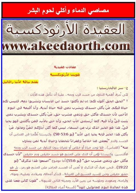 أما عن آكلي لحوم البشر ومصاصي الدماء الحقيقيين هم النصارى وطقوسهم تأمرهم بذلك بل لا يوجد خلاص عندهم إلا بذلك.!