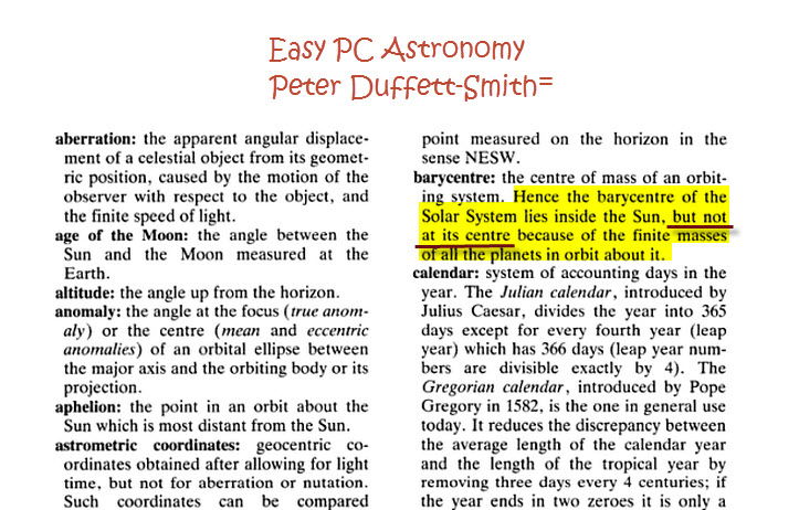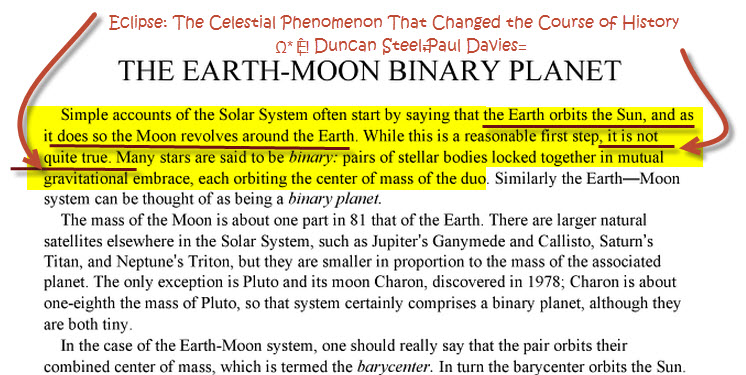 " الأرض " من الناحية الفيزيائية الأرض تدور حول محورها وتدور هى والشمس حول مركز الكتلة المشترك بينهم -barycenter - ومركز الكتلة هى النقطة التى تتمركز فيها كتلة الجسم ويمكن استبدال الجسم بهذة النقطة فلو دار جسمين ثقيلين حول بعضهم البعض فى مدار دائرى سيكون دورانهم حول مركز الكتلة المشترك بينهم ( ومركز الكتلة المشترك سيكون أقرب بالطبع للجسم الأثقل ويقترب منه كلما كان هذا الجسم أثقل من الجسم الأخر ) http://www.ebnmaryam.com/vb/attachme...1&d=1369827344 http://www.ebnmaryam.com/vb/attachme...1&d=1369827345 المشهور والمعروف ان الأرض تدور حول الشمس وان القمر يدور حول الأرض ... فالحقيقة هذا القول ليس بدقيق وهو مجرد تبسيط لحقيقة اخرى وهى ان الأرض والشمس يدوران مركز الكتلة الخاص بهم .... والأرض والقمر يدوران حول مركز الكتلة خاص بهم .... فضلا عن ان هذا القول ليس على إطلاقه بهذة السهولة ... لان وصف دوران جسم حول جسم لابد ان يُقيد بالمرجع أو مكان الرؤية كما ذكرنا فى المداخلة السابقة ( REFERENCE POINT ) ... فوصف دوران الأرض حول الشمس يأتى فى اطار ان المشاهد يراهما من نجم أخر خارج نطاق المجموعة الشمسية أو من اى مكان اخر بخلاف الأرض ... اما لو أتخذنا الأرض كنقطة مرجعية فالوصف الفيزيائى الصحيح سيكون ان الشمس هى التى تدور حول الأرض ... والقول المشهور ان الأرض هى التى تدور حول الشمس ناتج من جعل المرجعية من نجم اخر خارج المجموعة الشمسية ولأن الشمس هى الجسم الكبير ومركز الكتلة بينها و بين الارض يقع داخلها لانها أكبر من الأرض بكثير جداااااااا ولكن يظل مركز الكتلة غير مركز الشمس وبالتالى فالشمس ايضا تدور حول هذا المركز ولكن بسرعة لا تُقارن بالطبع من سرعة دوران الأرض حول هذا المركز وهنا ستكون الحسابات سهلة ... لان جعل الأرض مركز والشمس هى التدور حولها سيجعل الحسابات غاية فى التعقيد ولكنه من الناحية الفيزيائية لا شئ فيه ... ربما يكون الكلام صادم بعض الشئ ولذلك سنؤكد هذا بأكثر من مرجع http://www.ebnmaryam.com/vb/attachme...1&d=1369836251 http://www.ebnmaryam.com/vb/attachme...1&d=1369836252 القول بان القمر يدور حول الأرض قول تقريبى ... الحقيقة ان كلامها يدور حول مركزى كتلتيهما ( BARY CENTER ) http://www.ebnmaryam.com/vb/attachme...1&d=1369827347 http://www.ebnmaryam.com/vb/attachme...1&d=1369827532 ايضا http://www.ebnmaryam.com/vb/attachme...1&d=1369836564 المألوف بالنسبة لنا ان الأرض تدور حول الشمس ولكن لنكون أكثر دقة فلنقول ان الحركة حول مركز الكتلة http://www.ebnmaryam.com/vb/attachme...1&d=1369827556 http://www.ebnmaryam.com/vb/attachme...1&d=1369827558 مركز كتلة المجموعة الشمسية يقع داخل الشمس ولكنه ليس مركز الشمس بسبب كتلة الأجسام التى تدور حولها http://www.ebnmaryam.com/vb/attachme...1&d=1369827757 http://www.ebnmaryam.com/vb/attachme...1&d=1369827759 حركة الشمس حول مركز الكتلة يتوقف على باقى الكواكب ..... ومركز الكتلة بين الشمس والمشترى يقع خارج الشمس لان المشترى كبير جدا بالمقارنة بالأرض http://www.ebnmaryam.com/vb/attachme...1&d=1369827761 http://www.ebnmaryam.com/vb/attachme...1&d=1369836249 صورة لمركز الكتلة بين الشمس وكوكب المشترى والذى يقع خارج الشمس http://spaceplace.nasa.gov/barycenter/barycenter.en.gif http://spaceplace.nasa.gov/barycenter/ الشمس والأرض فى الحقيقة يدوران حول بعضهما البعض حول مركز مشترك يُسمى - BARYCENTER The Sun and the Earth actually orbit around each other. They swoop around a common center called the barycenter.فى حالة الشمس والأرض فكلامها يدوران حول مركز الكتلة ( مثل مركز الجاذبية ) والذى يسمى - BARYCENTER - In the case of the Earth and the Sun, both bodies orbit around the very center of the mass (similar to center of gravity) between them. This point is called the "barycenter." http://spaceplace.nasa.gov/barycenter/ القمر والأرض - نفس الكلام The moon does not orbit the center of the earth, rather, they both revolve around the center of their masses called the barycenter http://library.thinkquest.org/29033/begin/earthsunmoon.htm (The Earth and Moon orbit about their barycentre (common centre of mass http://en.wikipedia.org/wiki/Orbit_of_the_Moon الأرض وكل كواكب المجموعة الشمسية يدوران حول مركز الكتلة لا الشمس The Earth and all the planets in the Solar System orbit the barycentre and not the Sun http://www.solarchords.com/solar-chord-science/3/astrophysicists-earth-orbit--sun-or-barycentre/57209/ The sun and other planets each have their own gravity well which interact and pull on one another. The result of this, is that everything in an orbital system (like our solar system) orbit the center 