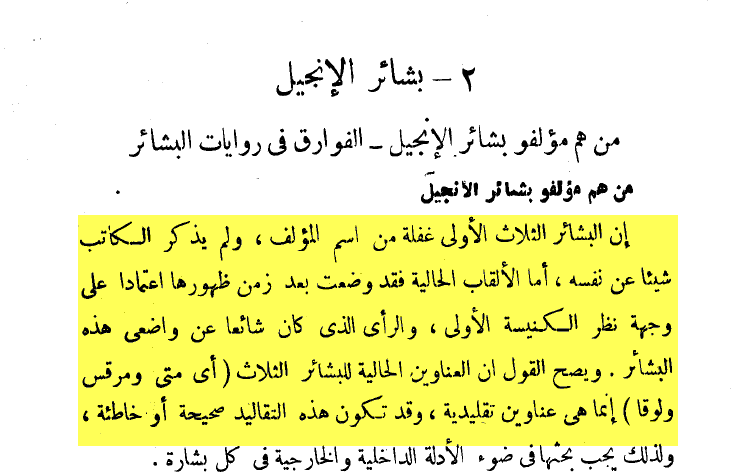 الحمد لله نحمده , ونستعين به ونستغفره , ونعوذ بالله تعالى من شرور أنفسنا ومن سيئات أعمالنا , من يهده الله فلا مُضِل له , ومن يضلل فلن تجد له وليّاً مرشداً , وأشهد أن لا إله إلا الله وحده لا شريك له , وأشهد أن محمداً عبده ورسوله , وصفيه من خلقه وخليله , بلَّغ الرسالة , وأدى الأمانة , ونصح الأمة , فكشف الله به الغمة , ومحى الظلمة , وجاهد في الله حق جهاده حتى آتاه اليقين , وأشهد أن عيسى ابن مريم عبد الله ورسوله , وكلمته ألقاها إلى مريم وروح منه . ثم أما بعد « اللَّهُمَّ رَبَّ جِبْرَائِيلَ وَمِيكَائِيلَ وَإِسْرَافِيلَ فَاطِرَ السَّمَوَاتِ وَالأَرْضِ عَالِمَ الْغَيْبِ وَالشَّهَادَةِ أَنْتَ تَحْكُمُ بَيْنَ عِبَادِكَ فِيمَا كَانُوا فِيهِ يَخْتَلِفُونَ اهْدِنِى لِمَا اخْتُلِفَ فِيهِ مِنَ الْحَقِّ بِإِذْنِكَ إِنَّكَ تَهْدِى مَنْ تَشَاءُ إِلَى صِرَاطٍ مُسْتَقِيمٍ »(صحيح مسلم-1847). هل المخطوطات الاصلية للكتاب المقدس تحمل اسم كاتب السفر:ـ فى حقيقة الامر ان المخطوطات التى تسمى خطأ بأصلية ضاعت ولايستطع احد ان يجزم ان الكاتب مكتوب عليه ام لا اذا من اين جاءت أسماء هذه الاسفار المنسوبة الى الرسل فهذه الاسماء ،اضيفت فى نهاية القرن الثاني! وضعت على حسب أهواء الكنيسة بأسم التقليد المزعوم وهذا ليس كلامى اولا الادلة على ضياع النسخ الاصلية :ـ نقل لكم من دائرة المعارف الكتابية تحت عنوان " مخطوطات العهد الجديد " وهذا ليس كلام الغرب بل الذى قام بتحريرها مجموعة من الدكاترة والقساوسة وهم الدكتور القس منيس عبد النور _ الدكتور القس صمؤيل حبيب _ دكتور القس فايز فارس _ الدكتور جوزيف صابر _ والمحرر المسئول وليم وهبة بباوى (( أما قديماً فكانت كل نسخة تكتب على حدتها باليد. وفي مثل تلك الأحوال، كان لابد ألا تتطابق تماماً أي مخطوطتين من أي كتاب وبخاصة إذا كان كبيراً نوعاً ... فإن معنى هذا أن العديد من الاختلافات قد وجدت طريقها إلى المخطوطات. وقد فقدت أصول أسفار العهد الجديد - بلا شك - في زمن مبكر جداً .. ومعنى هذا أنه ليس من الممكن أن نحدد بدقة كاملة كل كلمة من الكلمات الأصلية للعهد الجديد على أساس أي مخطوطة بذاتها .. عند نسخ أي كتاب بخط اليد، لابد أن تحدث أخطاء عند النقل سواء سهواً أو عمداً - في بعض الأحيان .. وعند استنساخ هذه النسخة تنتقل أخطاء النسخة المنقول عنها إلى النسخة الجديدة علاوة على ما يحدث من الناسخ الجديد من أخطاء واختلافات عند النقل .... وهكذا كلما زاد عدد مرات النسخ بين مخطوطة أصلية إلى أن نصل إلى مخطوطة من عصر متأخر، زاد عدد الأخطاء )) http://www.kalemasawaa.com/vb/attach...1&d=1393980258 هذا ما قالته دائرة المعارف الكتابية على الأخطاء الموجودة بين المخطوطات القديمة وننقل لكم ما ورد في دائرة المعارف الكتابية حرف (أ) تحت عنوان الكتاب المقدس والنقد ((وحيث أنه لم تصلنا أى نسخة أصلية بيد أحد من الكتاب الذين استخدمهم روح الله فى كتابة الأسفار المقدسة، فإن نقد النصوص تصبح له أهمية بالغة فى دراسة هذه الأسفار. )) فكيف نحن لنا أن نصدق كلام الكتاب المقدس بعد كل هذه الأخطاء ؟ هل مازال الله الكتاب المقدس كلام الله تعالي بلا تحريف ولا تتغير ؟ منقول من كتاب ( مخطوطات الكتاب المقدس بلغاته الأصلية ) للشماس الدكتور / إميل ماهر إسحاق أستاذ العهد القديم واللاهوت بالكلية الإكليريكية واللغة القبطية بمعهد اللغة القبطية بالقاهرة فيقول في أعلي الصفحة رقم (19) ويكمل في (20) وتحت عنوان : أسباب تنوع القراءات في المخطوطات الكتابية "" ليس بين أيدينا الآن المخطوطة الأصلية , أي النسخة التي بخط يد كاتب أي سفر من أسفار العهد الجديد او القديم . فهذه المخطوطات ربما تكون قد إستهلكت من كثرة الإستعمال , أو ربما يكون بعضها قد تعرض للإتلاف أو الإخفاء في أزمنة الإضطهاد , خصوصاُ وأن بعضها كان مكتوب علي ورق البردي وهو سريع التلف ولكن قبل أن تختفي هذا المخطوطات الأصلية نٌقلت عنها نسخ كثيرة لأنه منذ بالداية كانت هناك حاجة إلي ماسة لنساخة الأسفار المقدسة لإستخدامها في إجتما