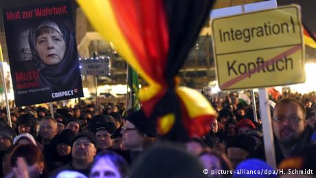 تصريحات المستشارة الألمانية انغيلا ميركل التي قالت فيها بأنّ الإسلام جزء من الهوية الألمانية و بأنّ الإسلام الحقيقي لا علاقة له بالإرهاب و العنف ، دفعت القائمين على " البيغيدا" إلى التظاهر حاملين صور مركبة تظهر ميركل بهذا الشكل :