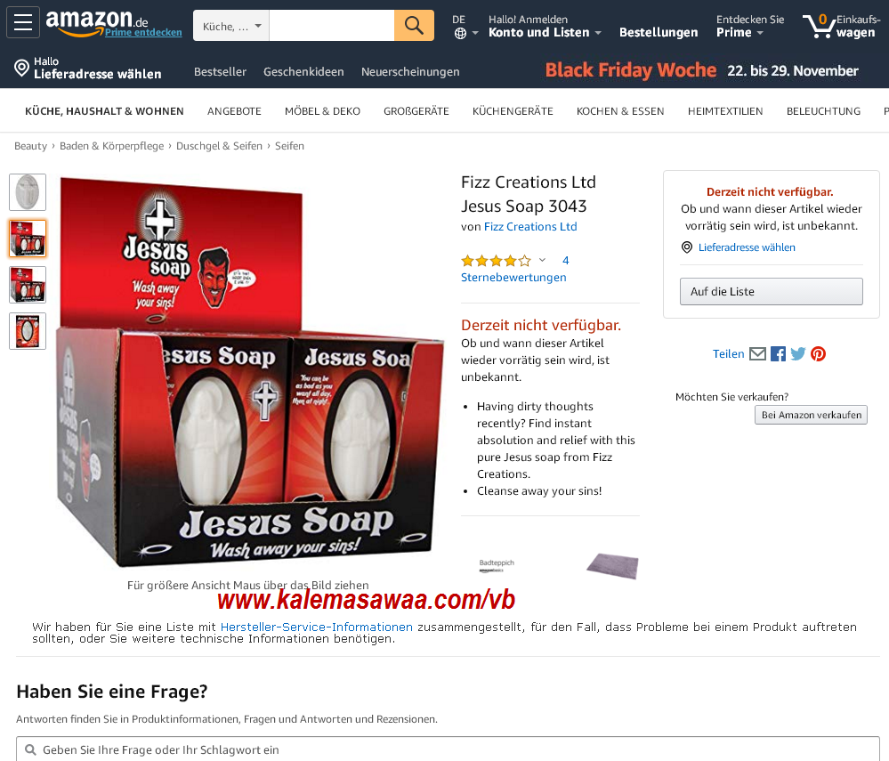 اللهم صل على محمد وعلى آله وصحبه أجمعين ،، صكوك الغفران تعود و لكن بحلّة جديدة ! :SMILS171: صابونة يسوع لتكفير الخطايا و الذنوب ! الكمية محدودة ، فسارع يا مسيحي / مسيحية بالشّراء ! رابط شراء المنتج على موقع أمازون ---> برجاء النّقر هُنا https://www.kalemasawaa.com/vb/attac...1&d=1574542074 |