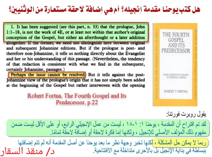 بسم الله الرحمن الرحيم و به نستعين إعترف بطريرك الكنيسة الأرثوذكسية بإضافات لاحقاً لإنجيل يوحنا لتجذب مزيداً من القراء . في الغالب هذه النصوص التي أقر بإضافاتها البابا تواضروس لجذب مزيداً من القراء هي ( لجذب اليونانيين الوثنيين بإقتباسات من عقائدهم ) يعني حتى النصوص اليتيمة الي من أقوال يوحنا مش من أقوال المسيح و كانوا بيتعكزوا عليها لإثبات إلوهية يسوع و تجسده طلعت نصوص مزيفة ( فشنك ) فماذا تنتظر يا نصراني !؟ https://www.kalemasawaa.com/vb/attac...1&d=1613043932 https://www.kalemasawaa.com/vb/attac...1&d=1650230124 و نقراء ل وليم باركلي في تفسير العهد الجديد https://www.kalemasawaa.com/vb/attac...1&d=1613044032 وكلمة "لوغوس" كانت معروفة من قبل في الآثار الوثنيًة واليهوديًة: وأول استخدام لها كان في كتابات هيراقليطسHeraclitus الأفسسي حوالي سنة 500 ق.م. وعند فيلو كان اللوغوس هو "العقل الإلهي" الذي يحكم العالم, وهو الوسيط بين الله والكون المادي. أما أول من استخدمها في العهد الجديد فهو القدًيس يوحنا اللاهوتي. ولكنه استخدم الكلمة بطريقة جديدة أبعد بكثير من فكر الأقدمين عنها. واستخدمها أيضاَ القدًيس إغناطيوس الأنطاكي (35-107 م.). أما العلًامة كليمندس الإسكندري(150- 215 م.) فجعله المحور الرئيسي في تعليمه, حتي جاء القدًيس أثناسيوس الرسولي (328-373 م.) فربط ربطا محكمًا وكاملًا بين هذا اللقب وبين تعليمه عن الفداء والخلاص. طقوس الكنيسة القبطية الأرثوذكسية قاموس المصطلحات الكنسية | معاني المصطلحات | معنى كلمة 7- اللوغوس في اليونانية ثلاثة ألفاظ بمعنى كلمة: أ- EPOS الكلمة التي يقولها شخص فتؤخذ منه باعتبارها كلمة أو وعد، كما نقول هذا القول للأب الفلاني. ب- RHEMA مجرد لفظ أي الحروف فكلمة يوحنا مكونة من حروف ى، و، ح، ن، ا. ج- LOGOS بمعنى النطق أو الفكر وأُخِذَ منها كلمة LOGIC= المنطق وفي الفكر اليوناني فاللوغوس يمثل العقل المدبر للكون وهو أول الخليقة. والقديس يوحنا استخدم كلمة اللوغوس للدلالة على الأقنوم الثاني وهكذا قال بولس الرسول عن المسيح أنه حكمة الله (1كو24:1). ولعل لفظ النطق يكون معبرًا عن اللوغوس أكثر من تعبير الكلمة. فالنطق يعبر عن أفكار وحكمة وعقل المتكلم. هو فكر منطوق. ولولا النطق ما كنا ندرك العقل. فالعقل لا يدرك إلاّ من خلال النطق. فالمسيح أو اللوغوس هو نطق الله العاقل أو عقل الله الناطق، هو من ذات الآب وليس خارجًا عنه. إذًا الله لا يُدرك سوى من خلال كلمته (هو خَبرَّ يو18:1). وهذا ما سبق وقاله إشعياء "فيعلن مجد الرب ويراه كل بشر لأن فم الرب تكلم (الكلمة)" (إش5:40) فالروح القدس واحد الذي أعلن لإشعياء وليوحنا. فالكلمة هو صورة الله فهو يحمل نفس ذات طبيعة الله ويعبر تعبيراً كاملاً عن الله. وهذا الكلمة هو صورة الله لا المنفصلة عنه بل الكامنة فيه. وفي (عب2:1-3) استعمل بولس الرسول ألفاظ الابن والصورة والكلمة والبهاء للتعبير عن الله المتجسد الأقنوم الثاني. فالابن هو الفعل العقلي والصورة والنطق داخلياً. واللوغوس عند يوحنا يناظره في العهد القديم قوله عن المسيح أنه الحكمة (أم1:8-30) وفي سفر الأمثال نرى الحكمة وقد تم تشخيصها، فهي شخصية إلهية. فالوحي أظهر أن الحكمة ليست صفة بل شخصية إلهية. شرح الكتاب المقدس - القس أنطونيوس فكري تفسير إنجيل يوحنا - المقدمة "كانت كلمة "لوغوس" معروفة لدي اليهود والأمم، عرفها هيرقليتسHeracllitus حوالي 500 ق.م. بأنها العقل الجامع الذي يحكم العالم ويخترقه، وقد تبناه الرواقيونوأشاعوه. وفي اليهودية الهيلينية "اللوغوس" هو أقنوم مستقل، تطورت فكرته ليكون مصاحبًا للحكمة (صوفيا) (الحكمة 9: 1، 2؛ 18: 15). إذ ربطفيلون السكندري بين تعبيرات فلسفية ومفاهيم كتابية قال أن اللوغوس هو نموذج إلهي جاء العالم صورة له. * "لوغوس" في اليونانية لها معان كثيرة. فهي تعني الكلمة والعقل والتقدير وعلة الأشياء الفردية التي عليها تقوم. بكل هذه جميعًا نحن نعلن عن المسيح[94]. القديس جيروم شرح الكتاب المقدس - العهد الجديد - القمص تادرس يعقوب ملطي يوحنا 1 - تفسير إنجيل يوحنا |
