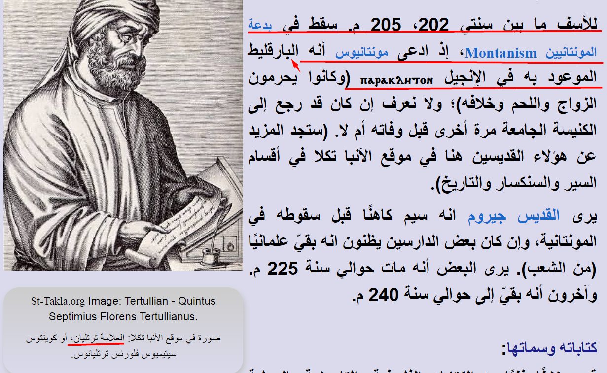 العلامة ترتليانوس البراكليتوس انسان وليس الروح القدس