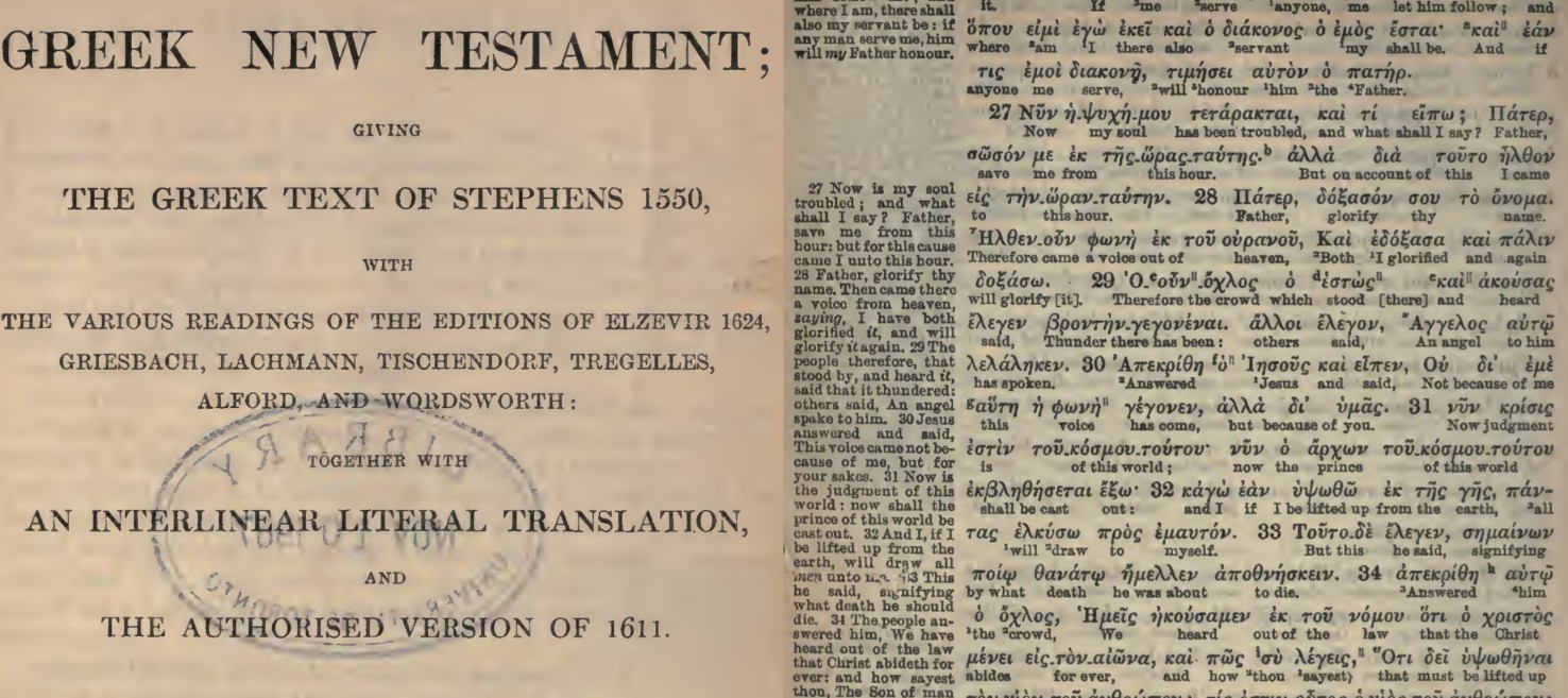 بسم الله الرحمن الرحيم و به نستعين ذكرت في المشاركة السابقة الأدلة الكتابية من العهد الجديد بترجمات عربية مختلفة على نجاة المسيح و إنقاذه و حفظه من القتل و الصلب برفعه حيا كما رفع إيليا من قبل في هذه المشاركة سأضع ترجمات إنجليزية و يونانية * في نهاية هذه المشاركة سأضع روابط ذات صلة بالفداء https://www.kalemasawaa.com/vb/attac...1&d=1763756567 New Revised Standard Version, Anglicised Catholic Edition (NRSVACE) 27 ‘Now my soul is troubled. And what should I say—“Father, save me from this hour”? No, it is for this reason that I have come to this hour. 28 Father, glorify your name.’ Then a voice came from heaven, ‘I have glorified it, and I will glorify it again.’ 29 The crowd standing there heard it and said that it was thunder. Others said, ‘An angel has spoken to him.’ 30 Jesus answered, ‘This voice has come for your sake, not for mine. 31 Now is the judgement of this world; now the ruler of this world will be driven out. 32 And I, when I am lifted up from the earth, will draw all people[e] to myself.’ 33 He said this to indicate the kind of death he was to die. 34 The crowd answered him, ‘We have heard from the law that the Messiah[f] remains for ever. How can you say that the Son of Man must be lifted up? Who is this Son of Man?’ Authorized (King James) Version (AKJV) 27 Now is my soul troubled; and what shall I say? Father, save me from this hour: but for this cause came I unto this hour. 28 Father, glorify thy name. Then came there a voice from heaven, saying, I have both glorified it, and will glorify it again. 29 The people therefore, that stood by, and heard it, said that it thundered: others said, An angel spake to him. 30 Jesus answered and said, This voice came not because of me, but for your sakes. 31 Now is the judgment of this world: now shall the prince of this world be cast out. 32 And I, if I be lifted up from the earth, will draw all men unto me. 33 This he said, signifying what death he should die. 34 The people answered him, We have heard out of the law that Christ abideth for ever: and how sayest thou, The Son of man must be lifted up? who is this Son of man? 35 Then Jesus said unto them, Yet a little while is the light with you. Walk while ye have the light, lest darkness come upon you: for he that walketh in darkness knoweth not whither he goeth. 36 While ye have light, believe in the light, that ye may be the children of light. These things spake Jesus, and departed, and did hide himself from them. Darby Translation (DARBY) 27 Now is my soul troubled, and what shall I say? Father, save me from this hour . But on account of this have I come to this hour. 28 Father, glorify thy name. There came therefore a voice out of heaven, I both have glorified and will glorify [it] again . 29 The crowd therefore, which stood [there] and heard [it], said that it had thundered. Others said, An angel has spoken to him. 30 Jesus answered and said, Not on my account has this voice come, but on yours. 31 Now is [the] judgment of this world; now shall the prince of this world be cast out: 32 and I, if I be lifted up out of the earth, will draw all to me. 33 But this he said signifying by what death he was about to die. 34 The crowd answered him, We have heard out of the law that the Christ abides for ever; and how sayest thou that the Son of man must be lifted up? Who *is* this, the Son of man? English Standard Version (ESV) 27 “Now is my soul troubled. And what shall I say? ‘Father, save me from this hour’? But for this purpose I have come to this hour. 28 Father, glorify your name.” Then a voice came from heaven: “I have glorified it, and I will glorify it again.” 29 The crowd that stood there and heard it said that it had thundered. Others said, “An angel has spoken to him.” 30 Jesus answered, “This voice has come for your sake, not mine. 31 Now is the judgment of this world; now will the ruler of this world be cast out. 32 And I, when I am lifted up from the earth, will draw all people to myself.” 33 He said this to show by what kind of death he was going to die. 34 So the crowd answered him, “We have heard from the Law that the Christ remains forever. How can you say that the Son of Man must be lifted up? Who is this Son of Man?” Holman Christian Standard Bible (HCSB) 27 “Now My soul is troubled. What should I say—Father, save Me from this hour? But that is why I came to this hour. 28 Father, glorify Your name!”[h] Then a voice came from heaven: “I have glorified it, and I will glorify it again!” 29 The crowd standing there heard it and said it was thunder. Others said that an angel had spoken to Him. 30 Jesus responded, “This voice came, not for Me, but for you. 31 Now is the judgment of this world. Now the ruler of this world will be cast out. 32 As for Me, if I am lifted up[i] from the earth I will draw all people to Myself.” 33 He said this to signify what kind of death He was about to die. 34 Then the crowd replied to Him, “We have heard from the scripture that the Messiah will remain forever. So how can You say, ‘The Son of Man must be lifted up’?[j] Who is this Son of Man?” International Standard Version (ISV) 27 “Now my soul is in turmoil, and what should I say—‘Fathersave me from this hour’? No! It was for this very reason that I came to this hour. 28 Father, glorify your name.” Then a voice came from heaven, “I have glorified it, and I will glorify it again!” 29 The crowd standing there heard this and said that it was thunder. Others were saying, “An angel has spoken to him.” 30 Jesus replied, “This voice is for your benefit, not for mine. 31 Now is the time for the judgment of this world to begin.[m] Now the ruler of this world will be thrown out. 32