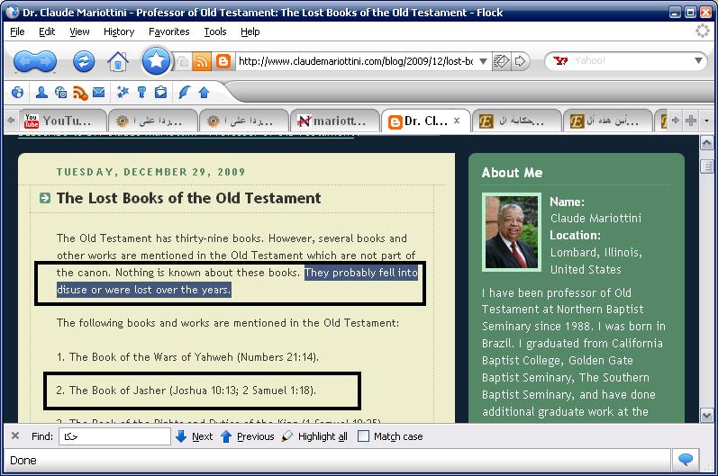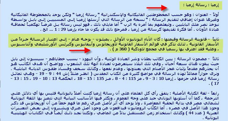 نبتدى ونقول هل يحتوى العهد القديم على كل القصص منذ بدء الخليقة ؟؟؟؟ بمعنى اخر هل ورود قصة فى التراث القديم وعدم ورودها فى العهد القديم يقتضى كذب هذة القصة ؟؟؟ أم ان العهد القديم لا يحتوى كل القصص وهناك قصص لم تُدون فى العهد القديم ؟؟؟ نأخذ الإجابة أولا من العهد القديم ......... أخبار الأيام الأولى 29: 29 و امور داود الملك الاولى و الاخيرة هي مكتوبة في اخبار صموئيل الرائي و اخبار ناثان النبي و اخبار جاد الرائي يشوع 10: 13 فدامت الشمس و وقف القمر حتى انتقم الشعب من اعدائه اليس هذا مكتوبا في سفر ياشر فوقفت الشمس في كبد السماء و لم تعجل للغروب نحو يوم كامل الملوك الأول 11: 41 و بقية امور سليمان و كل ما صنع و حكمته اما هي مكتوبة في سفر امور سليمان أخبار الأيام الثاني 9: 29 وَبَقِيَّةُ أُمُورِ سُلَيْمَانَ الأُولَى وَالأَخِيرَةِ، أَمَاهِيَ مَكْتُوبَةٌ فِي أَخْبَارِ نَاثَانَ النَّبِيِّ، وَفِي نُبُوَّةِ أَخِيَّا الشِّيلُونِيِّ، وَفِي رُؤَى يَعْدُو الرَّائِي عَلَى يَرُبْعَامَ بْنِ نَبَاطَ؟ أمور سليمان وياشر وأخبار ناثان وغيرها ... كثير جدا من أسفار العهد القديم غير موجودة ....وذهبت مع الريح فهناك من يعترف بالحقيقة المرة ان هذة الأسفار ضاعت ....... مثل دائرة المعارف الكتابية مثلا .......... دائرة المعارف الكتابية - أخبار الأيام، السفر مراجع نبوية لم تعد موجودة لدينا الآن. مراجع نبوية لم تعد موجودة لدينا الآن. مراجع نبوية لم تعد موجودة لدينا الآن وهذا مثلا عالم من علماء العهد القديم يضع السفر ضمن دائرة الأسفار الضائعة !!!!! لندع الصور تتحدث http://www.ebnmaryam.com/vb/attachme...1&d=1265396270 http://www.ebnmaryam.com/vb/attachme...1&d=1265386662 http://www.seminary.edu/about/facult...ariottini.html وهناك الاباء الحاشا ... أصحاب المبررات ال تفطس من الضحك ... فهم يقولون ان هذة الكتب غير موحى بها ....... وعجبى فلماذا يحيلنا الكاتب اليها اذا ...!!! ولكن هؤلاء ايضا صرحوا ان كتاب العهد القديم اقتبسوا منها أشياء فهذة كتب غير مُوحى بها ولكن اقتبس منها كتاب الوحى ( عادى بتحصل فى أحسن العائلات ) دليل العهد القديم - دكتور ملاك محارب - صفحة 14 http://www.ebnmaryam.com/vb/attachme...0&d=1271932038 http://www.ebnmaryam.com/vb/attachme...1&d=1271932038 فسواء كانت هذة الكتب مقدسة أو غير مقدسة ... فهى بالتاكيد تحتوى على أشياء صحيحة بدليل اقتباس كتاب الوحى منها ........... 2- نقول ايضا ... ان العهد القديم الذى نراه الان ليس هو مصدر التاريخ القديم ..... بل هو مُجرد مُلخص لوثائق قديمة جداااا ........ واى شخص دارس للعهد القديم يعلم تماما نظرية المصادر الأربعة ..(J,E,D,P) لن أطيل كثيرا ويكفينى نقل ما جاء فى كتاب فكرة عامة عن الكتاب المُقدس الذى يلخص لنا الموضوع فى نقاط رائعة فكرة عامة عن الكتاب المُقدس - دير الانبا مقار - صفحة 22 http://www.ebnmaryam.com/vb/attachme...5&d=1271932294 http://www.ebnmaryam.com/vb/attachme...1&d=1271933515 وللعلم العهد الجديد ايضا لا يحتوى كل شئ عن المسيح علية السلام اللاهوت المُقارن الجزء الأول - البابا شنودة - صفحة 54 http://www.ebnmaryam.com/vb/attachme...3&d=1271932294 http://www.ebnmaryam.com/vb/attachme...4&d=1271932294 ونفس الكلام ينطبق ايضا على القران الكريم ......... 2- نعود الى العهد القديم ... ونقول انة بخلاف كل هذا ..... لقد حرف اليهود العهد القديم كما أخبرنا اباء الكنيسة ..........وحذفوا واضافوا فية للصبح ..... فيبرر لنا اوريجانوس عدم وجود الأسفار القانونية الثانية فى النسخة العبرية ان اليهود حذفوها لانها تُسئ الى شيوخهم ....!!!! وعندما نقرأ فى انجيل متى ......... 2: 23 و اتى و سكن في مدينة يقال لها ناصرة لكي يتم ما قيل بالانبياء انه سيدعى ناصريا وبالطبع هذة النبوءة غير موجودة فى العهد القديم ....!!! فياترى اين ذهبت ؟؟؟؟ يرد علينا العلامة الكبير أوى يوحنا الذهبى الفم ويقول And what manner of prophet said this? Be not curious, nor overbusy. For many of the prophetic writings have been lost; and this one may see from the history of the Chronicles.22 For being negligent, and continually falling into ungodliness, some they suffered to perish, others they themselves burnt up23 and cut to pieces. The latter fact Jeremiah relates;24 the former, he who composed the fourth book of Kings, saying, that after 2R 22,8, etc) a long time the book of Deuteronomy was hardly found, buried som