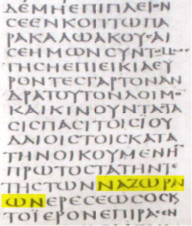كلمة (ναζωραιων = نصاري ) وإليكم النص في المخطوطة السينائية ( القرن الرابع )