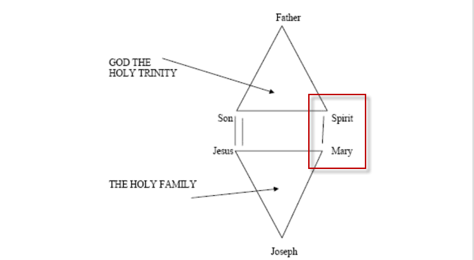 ترجمة : الرسم البياني التالي يرينا كيف أنّ العذراء مرتبطة بالروح القدس بواسطة خط وحيد ،