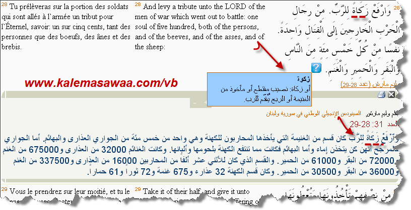 استناداً لسفر العدد ، أصحاح 31 ، عدد 28 نصيب معبود و ربّ الكنيسة من