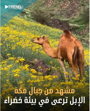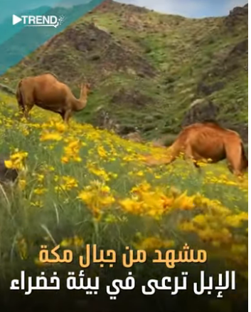 مشهد من جبال مكة : إبل ترعى وسط مروج أم القرى الخضراء