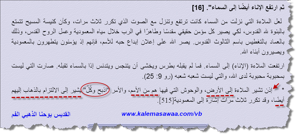 إليكم ياسادة الدّليل من فم مفسّري كتاب النّصارى المقدّس المتكلّمين بإرشاد و إلهام وتوجيه من الرّوح القُدس :