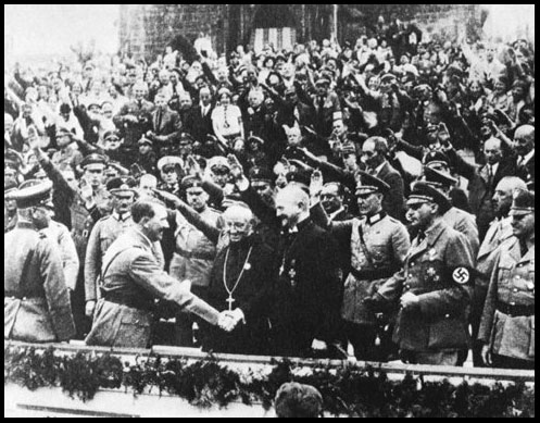 قد يقول قائل : هؤلاء القساوسة قد أجبروا على إبداء تأييدهم للنّازية و هذه الصور هي من توقيع ماكينة الدّعاية النازية بقيادة الدّاهية جوزيف كوبلز ( أوّل شخص عن اليمين في الصورة أدناه ) ![]() طيب ماذا عن هذا القسّ الذي يُجاهر بأنتمائه النّازي ؟؟؟؟ ![]() الخبر أوردته صحيفة 7 / 7 البلجيكية :