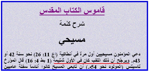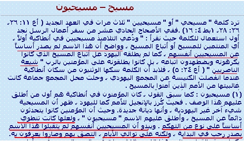 كلمة مسيحي هي نسبة إلى " المسيح "، والمسيح في العربية هو الممسوح وربما تكون مشتقة من الكلمة الآرامية السريانية (مشيحا) والآرامية هي لغة المسيح، وكلمة مسيحي في معظم اللغات الهندوأوروبية مشتقة من الكلمة اليونانية "كريستوس" بمعنى المسيح. http://ar.wikipedia.org/wiki/%D9%85%...8A%D9%88%D9%86 ![]() ![]() ![]() ![]() موضوع ذو صلة : أنقر فضلا هنا المزيد من مواضيعي
