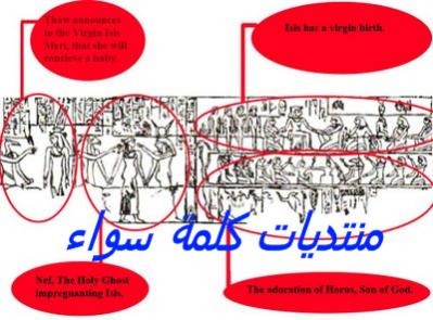 المصدر : هنا التشابه بين قصة ميلاد يسوع الناصري و ميلاد الاله الوثني الفرعوني حورس ، نسجل حضورالروح القدس the kneph :