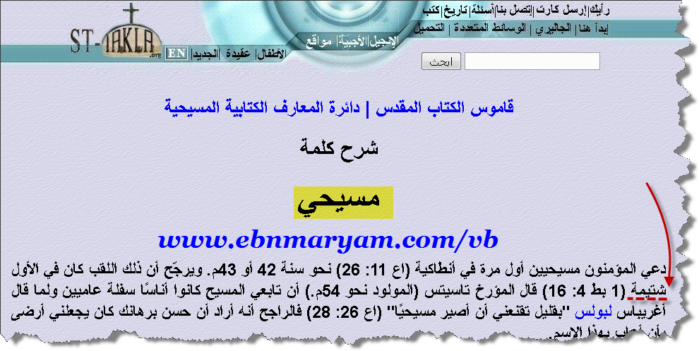 لماذا وضعتَ كلمةالنصارى بين قوسين ؟؟؟ مع أنّك نصراني - حتى النخاع - و بشهادة كتابك الذي تقدّس : أعمال الرسل ، أصحاح 24 : وجدنا هذا المتهم مخربا، يثير الفتنة بين جميع اليهود في البلاد كلها، وهو يتزعم مذهب النّصارى ( ترجمة الحياة ) ربّما لا تعلم ضيفنا أنّ كلمة مسيحي هي إهانة لكَ و شتيمة في حقّك ؟؟؟؟؟ الآن أيّهما تفضّل؟؟؟ أن نناديك بـِ " النصراني" أم "المسيحي " ؟؟؟ هيّا أطرب مسامعي ، كلّي آذان صاغية .... |