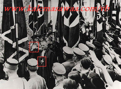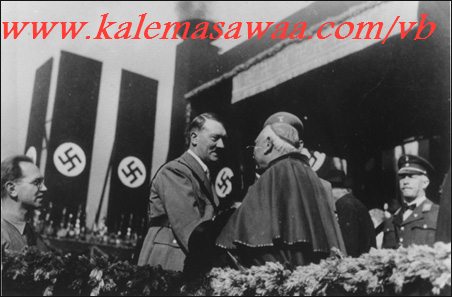 السلام عليكم ورحمة الله اللهم صل على محمد وعلى آله وصحبه أجمعين صُوَر تكشف العلاقة السرية التي جمعت بين الكنيسة و قساوستها من جهة و نظام الرايخ الثالث النازي من جهة أخرى ... هتلر ماكان ليقوم بحملاته الدموية لولا مباركة الكنيسة و رجالاتها ... ![]() ولا عجب !!! فربّ العهد القديم يقول : " أقتلوا للهلاك " !!! سفر حزقيال 9: 6 "وَاضْرِبُوا لاَ تُشْفِقْ أَعْيُنُكُمْ وَلاَ تَعْفُوا. اَلشَّيْخَ وَالشَّابَّ وَالْعَذْرَاءَ وَالطِّفْلَ وَالنِّسَاءَ. اقْتُلُوا لِلْهَلاَكِ" والصورالتي تكشف الوجه الدموي للكنيسة تتكلم ... ![]() العلَم النازي بصليبه المعقوف يَخفُق أمام أحدى الكاتدرائيات : ![]() و هناك المزيد : ![]() ![]() ![]() ![]() ![]() ![]() ![]() ![]() ![]() ![]() ![]() ![]() ![]() النازي هتلر يوقع " أوتوغرافا " لاحدى الراهبات !!! للذكرى ربّما ... ![]() ![]() للمزيد من مواضيعي
