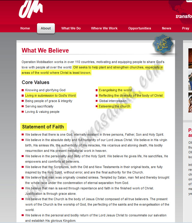 فهي تسعى لنشر الإيمان المسيحي وتعاليم المسيح حسب اعتقادهم حول العالم