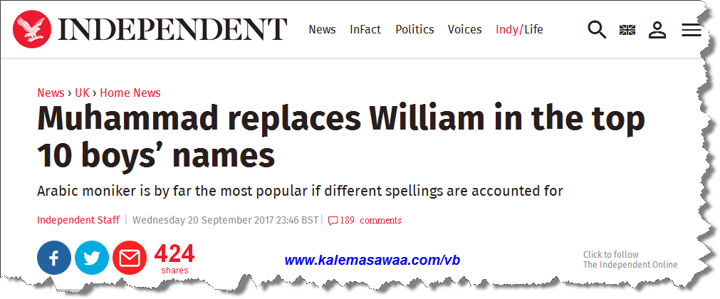 But if different spellings of the moniker are accounted for – including Mohammed and Mohammad – the Arabic name is by far the most popular boys' name overall.