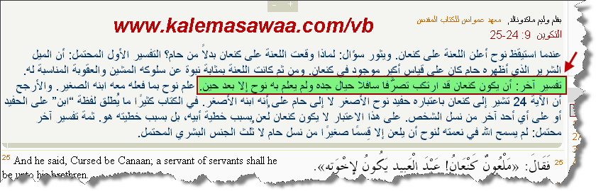 الجاني كنعان المذكور في العدد 22 على انه إبن حام