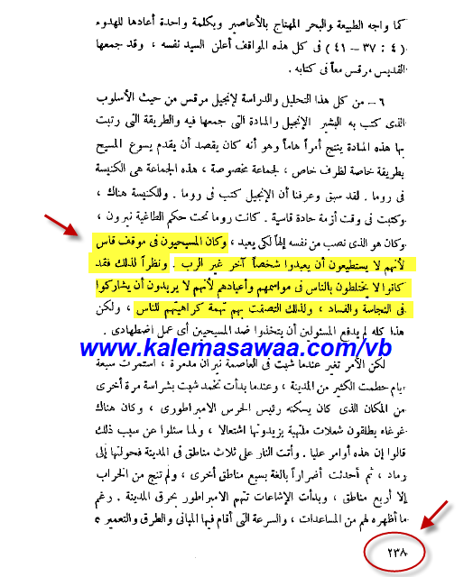 ![]() اللهم صل على محمد وعلى آله وصحبه أجمعين ،، ملاخي 2 : 7 لأَنَّ شَفَتَيِ الْكَاهِنِ تَحْفَظَانِ مَعْرِفَةً، وَمِنْ فَمِهِ يَطْلُبُونَ الشَّرِيعَةَ، لأَنَّهُ رَسُولُ رَبِّ الْجُنُودِ. ![]() مشاركة المسيحي في أعياد المخالف له في العقيدة نجاسة و فساد ! نقرأ من كتاب القسّ فهيم عزيز المتكلم بإرشاد و إلهام و توجيه من الرّوح الـقُدُس : المدخل الى العهد الجديد صفحة : 238 للتوثيق رابط الكتاب : من هُنا ![]() ![]() ![]() بنفس منطق القسّ نقول : نحن كمسلمين لا نستطيع أن نعبد إلها آخر غير إله إبراهيم و موسى و عيسى عليهم صلوات ربّي أجمعين ، و عليه فإننا لا نختلط بعبّاد الإنسان في مواسهم و أعيادهم ( الكريسماس كمثال ) لأننا لا نريد أن نكون جزءا من النّجاسة و الفساد ! ![]() ![]() ![]() ومن له أذنان للسمع فليسمع ! ( متى 11 : 15 ) للمزيد من مواضيعي