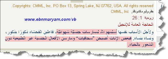 رومية 1 :26 لِذلِكَ أَسْلَمَهُمُ اللهُ إِلَى أَهْوَاءِ الْهَوَانِ، لأَنَّ إِنَاثَهُمُ اسْتَبْدَلْنَ الاسْتِعْمَالَ الطَّبِيعِيَّ بِالَّذِي عَلَى خِلاَفِ الطَّبِيعَةِ بقلم المفسّر وليم ماكدونالد نقرأ :