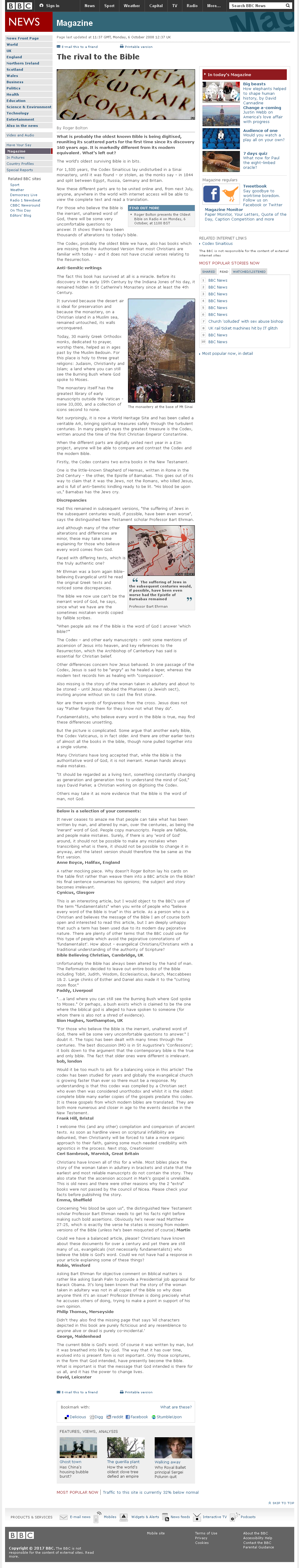 But the picture is complicated. Some argue that another early Bible, the Codex Vaticanus, is in fact older. And there are other earlier texts of almost all the books in the bible, though none pulled together into a single volume.