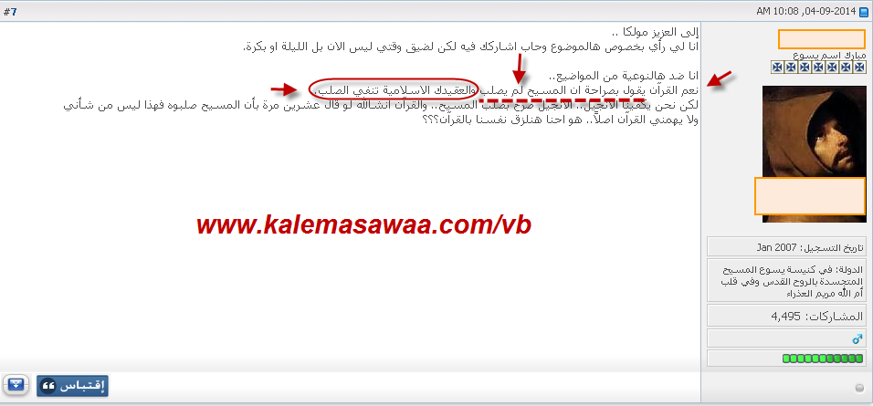 نقرأ من أعمال الرسل 3 : 12 - فَلَمَّا رَأَى بُطْرُسُ ذلِكَ أَجَابَ الشَّعْبَ:«أَيُّهَا الرِّجَالُ الإِسْرَائِيلِيُّونَ، مَا بَالُكُمْ تَتَعَجَّبُونَ مِنْ هذَا؟ وَلِمَاذَا تَشْخَصُونَ إِلَيْنَا، كَأَنَّنَا بِقُوَّتِنَا أَوْ تَقْوَانَا قَدْ جَعَلْنَا هذَا يَمْشِي؟ 13- إِنَّ إِلهَ إِبْرَاهِيمَ وَإِسْحَاقَ وَيَعْقُوبَ، إِلهَ آبَائِنَا، مَجَّدَ فَتَاهُ يَسُوعَ، الَّذِي أَسْلَمْتُمُوهُ أَنْتُمْ وَأَنْكَرْتُمُوهُ أَمَامَ وَجْهِ بِيلاَطُسَ، وَهُوَ حَاكِمٌ بِإِطْلاَقِهِ. 14- وَلكِنْ أَنْتُمْ أَنْكَرْتُمُ الْقُدُّوسَ الْبَارَّ، وَطَلَبْتُمْ أَنْ يُوهَبَ لَكُمْ رَجُلٌ قَاتِلٌ. 15- وَرَئِيسُ الْحَيَاةِ قَتَلْتُمُوهُ، الَّذِي أَقَامَهُ اللهُ مِنَ الأَمْوَاتِ، وَنَحْنُ شُهُودٌ لِذلِكَ ![]() إسمح لي بالمناسبة أخي الحبيب أن أوردَ عيّنة من بعض كتابات كبيرهم الذي علّمهم السّحر و الذي أصبح " ملطشة " بين أيدي إخوته في الإيمان والمعمودية : ![]() و إليكَ ردّ أحد المنصّرين - عضو مُبارك بالمناسبة - الذي تكلّم في لحظة صدق نادرة : ![]() هل عرف المتابع الكريم الآن نوعية الكائنات التي جعلتها الكنيسة مُتصدّرة للمشهد ؟؟؟