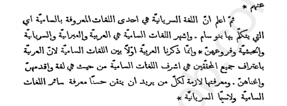 بسم الله الرحمن الرحيم منقووووووووووووووووول ![]() الرابط: https://www.noor-book.com/كتاب-اللمع...Y3Dm67VTvqXjpk اللغة العربية باعتراف جميع المحققين هي أشرف و أقدم و أغنى اللغات السامية، معرفة العربية لازمة لكل من يريد ان يتقن اللغات السامية و خاصة السريانية . Arabic language, admittedly, is the noblest, oldest and richest Semitic language. Learning Arabic is a must for those who want to learn other Semitic language especially Syriac . المطران اقليمس يوسف داوود، عالم السريانية ( اللمعة الشيهة في نحو اللغة السريانية).ص 8. Eqlimis Yousuf Dawood, ( The longing glitter of Syriac language grammar) ,p8'. للمزيد من مواضيعي