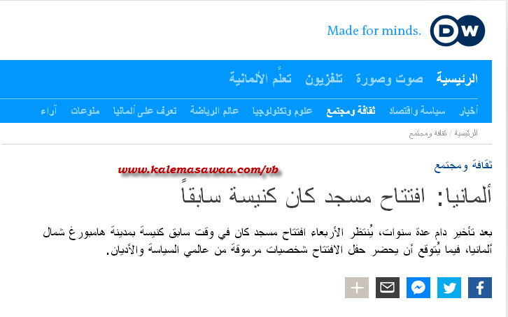 ![]() اللهم صل على محمد وعلى آله وصحبه أجمعين ،، أورد موقع دويتشه فيله - عربي خبراً مفاده : بعد تأخير دام عدة سنوات، يُنتظر الأربعاء افتتاح مسجد كان في وقت سابق كنيسة بمدينة هامبورغ شمال ألمانيا، فيما يُتوقع أن يحضر حفل الافتتاح شخصيات مرموقة من عالمي السياسة والأديان. ![]() يُفتتح رسمياً الأربعاء (26 أيلول/ سبتمبر 2018) بمدينة هامبورغ شمال ألمانيا مسجد النور، الذي كانت بنايته في وقت سابق كنيسة، حيث تُعد هذه المرة الأولى التي يتم فيها تحويل دار عبادة تابعة لاتحاد الكنائس الإنجيلية في ألمانيا (EKD) إلى مصلى خاص بالمسلمين. ومن المتوقع حضور عدة شخصيات سياسية ودينية حفل الافتتاح، من بينها سفير الكويت في ألمانيا نجيب البدر، وأيمن مزيك رئيس المجلس المركزي لمسلمي ألمانيا، بالإضافة إلى وزير داخلية ولاية هامبورغ أندريه غروته. وكان من المنتظر افتتاح مسجد النور في تشرين الأول/ أكتوبر 2013، بيد أن الافتتاح تأخر عدة مرات بسبب أعمال إعادة البناء، التي كانت أكثر صعوبة مما هو متوقع، فضلاً عن مشاكل آخرى متعلقة بالتعديلات على الكنيسة السابقة والمصنفة كمحمية أثرية. وفي نفس السياق، لم تُستكمل بعد عملية إصلاح المأذنة وبناء واجهة جديدة بسبب ارتفاع تكاليف إعادة البناء وافتتاح المسجد - الواقع في منطقة هورن - من 1.5 مليون إلى حوالي خمسة ملايين يورو، إذ اعتمدت التكاليف بشكل كبير على التبرعات، بالإضافة إلى تمويل من دولة الكويت، التي تبرعت بحوالي 1.1 مليون يورو. وكانت الكنيسة - التي بُنيت عام 1961 - قد أغلقت سنة 2002 بسبب تراجع أعداد المصلين فيها، ليتم بعد ذلك بيعها إلى مستثمر. وفي سنة 2012 اشترى المسلمون الكنيسة وأعلنوا عزمهم تحويلها إلى مسجد، ما تسبب آنذاك في جدل داخل ألمانيا. يشار إلى أن مسلمي مسجد النور كانوا يؤدون صلواتهم منذ سنوات في مرآب سيارات تحت الأرض في منطقة "سانكت جورج" في هامبورغ، حسب ما أشار إليه دانيال عابدين، مدير نفس المسجد. الصور المرفقة الصور المرفقة للمزيد من مواضيعي