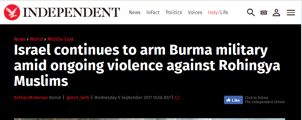 الاندبندنت: اسرائيل تقوم بتسليح الجيش البورمى ضد مسلمى الروهينجا.!!!
