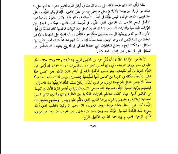﴿ فَوَيْلٌ لِّلَّذِينَ يَكْتُبُونَ الْكِتَابَ بِأَيْدِيهِمْ ثُمَّ يَقُولُونَ هَـذَا مِنْ عِندِ اللّهِ ﴾ لتحميل البحث من هنا التحمـــــــــــــــيل الحمد لله رب العالمين خالق السموات بلا عمد ولم يتخذ صاحبة ولا ولد وأسال الله عز وجل أن يكون هذا العمل خالصاً لوجه الله الكريم من هو كاتب إنجيل يوحنا؟؟؟ هل هو يوحنا الرسول كم تزعم الكنيسة والقساوسة ام شخص مجهول؟ لايوجد دليل قوى تقوم به الحجة أن كاتب إنجيل يوحنا هو يوحنا بن زبدى تلميذ المسيح الأمر لايعدو إستنتاجا بنى على إستنتاج غير صحيح..ومابنى على خطأ فهو خطأ ,غير صحيح لم أتكلم من كتاب إسلامى وأذكر قول عالم مسلم بل هتكون كل مراجعى مسيحية معتمدة حتى لا نفترى على القوم وسذكر بدليل والبرهان إن يوحنا لم يكتب الإنجيل المنسوب اليه ظلم وبهتان تصرالكنيسة على نسب الإنجيل يوحنا لإنه الإنجيل الوحيد الذين يذكر لاهوت المسيح بشكل واضح لذلك هى متمسك به لانه يخدم عقائد الكنيسة هل يوجد دليل علمى اومنطقى اوتاريخى قوى ويثبت هذا صحة نسب الانجيل الى يوحنا؟ حتى يكون محايد لا يوجد دليل على هذا غير التقليد المزعوم من الكنيسة لكن من علماء النصارى من ياكد ان الانجيل ليس من كتبت يوحنا نبدا بعون الله نسف فكرة نسب الانجيل الى يوحنا أول كتابة إسم كاتب الإنجيل ليس منذ الاقدم بل هى وضعت فى القرن الثاني الدليل الاول على هذا قول الاب بيار نجم فى كتابه مدخل الى العهد الجديد صفحة8 يقول [ كتاب الانجيل . لم يرد اسم الكاتب فى اى من الاناجيل الاربعة انما نعتمد فى تسميتنا للا ناجيل على تقليد وصلنا فى نهاية القرن الثاني ينسب فية الاناجيل بيوحنا ومرقس مرافق بولس...] يقول تسمية الإنجيل لم تكون فى أصل الكتاب بل هى وضعت فى القرن الثانى هذا دليل قوى على عدم كتبت يوحنا الانجيل المنسوب اليه بل اى إنجيل الدليل الثانى فى الترجمة اليسوعية فى مدخل العهد الجديد صفحة 7 تقول ما نصه[ولم تجر العادة ان يطلق على هذه المجموعة عبارة العهد الجديد الافى القرن الثانى...] وتقول أيضا فى صفحة 9 من المدخل [والراجح ان النسبة الى الرسل وقد جعلوها من قبل الصفة التى تميز بها المؤلفات الانجيلية] اعترافات خطيرة من واضعى الترجمة اليسوعية هو ليس موضوعنا ولكن الذين يريد ان واصله ان المخطوطات الاصلية الاناجيل لم يكون مكتوب عليه اسم المؤلف بل وضعت فى نهاية القرن الثانية ونسبت الى الرسل حتى تكتسب شهرة تميز به هذه المؤلفات . الدليل الثالث هل المخطوطات الاصلية تحمل اسم كاتب الانجيل؟؟ القس حبيب سعيد يقول اعتراف خطيرالمدخل الى الكتاب المقدس صـ221 [من هم مؤلفو بشائر الا نجيل ان البشائر الثلاث الاولى غلفة من اسم المؤلف ولم يذكر الكاتب شيئا عن نفسه ،اما الالقاب الحالية فقد وضعت بعد زمن ظهورها اعتمادا على وجهة نظر الكنيسة الاولى ، والرأى الذى كان شائعا من واضعى هذه البشائر ويصح القول ان العناوين الحالية للبشائر الثلاث (اى متى ومرقس ولوقا) انما هى عناوين تقليدية وقدتكون هذه التقاليد صحيحية أوخاطئة] انما هى عناوين تقليدية وقدتكون هذه التقاليد صحيحية أوخاطئة نصيحة الى القمص عبد المسيح بسيط ان يقتدى بمعلمه حبيب سعيد وان يراجع كلامه ويدقق فما يكتب ومازل أساتذة اللاهوت الدفاعى تنسب الإنجيل الرابع الى يوحنا!!! هذا الاعتراف ينسف فكرة نسبة الانجيل الى يوحنا نهايةالامرالكتاب المقدس صنع فى الكنيسةوتحت امرها هى تريد الكاتب يوحنا تضع يوحنا ولا تريد برنابا لاتضعه فى الكتاب المقدس كتاب مقدس تحت الطلب ! لقد صدق من قال كتاب بشري من أوله الى آخره طيب لو الإنجيل مكتوب ليه اسم المؤلف هل انتهى الامر الى ذلك ونقول ان هو مؤلفه الاجابة من القس فهيم عزيز فى كتابه القيم مدخل الى العهد الجديد صفحة217 يقول[ يعتقد كثير من الناس ما دام الاسم قد كتب فى مقدمة الانجيل فقد انتهى الامر ولم يعد هناك مجال حتى للسؤال عن شخصية الكاتب ولكن ليس هو واقع الامر فقد بدا بعض الناس يتساءلون عندما قراوا العنوان_الانجيل بحسب مرقس_ من يكون هذا ] لا يا 