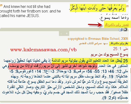 ما المقصود ياترى بهذه " المعرفة" ؟؟؟؟ ![]() ![]() ![]() المعرفة التي تحدث عنها نص متى 1 : 25 هي العلاقة الجسدية/ الجنسية ! الشّاهد من قلب الهولي بايبل نفسه : تكوين 24 : 16 وكانت الفتاة حسنة المنظر جدا وعذراء لم يعرفها رجل ملوك أول 1 : 14 وكانت الفتاة جميلة جدا فكانت حاضنة الملك وكانت تخدمه ولكن الملك لم يعرفها بالعودة إلى نص متى 1 : 25 ترجمة NTV الإسبانية كشفت المستور ! النص يقول بكلّ وضوح بأنّ يوسف النجار عاشر - في إطار الزواج - أمّ الإله بعد ولادة الطفل / الرب يسوع! Nueva Traduccion Viviente يُتبع ...>>>> المزيد من مواضيعي