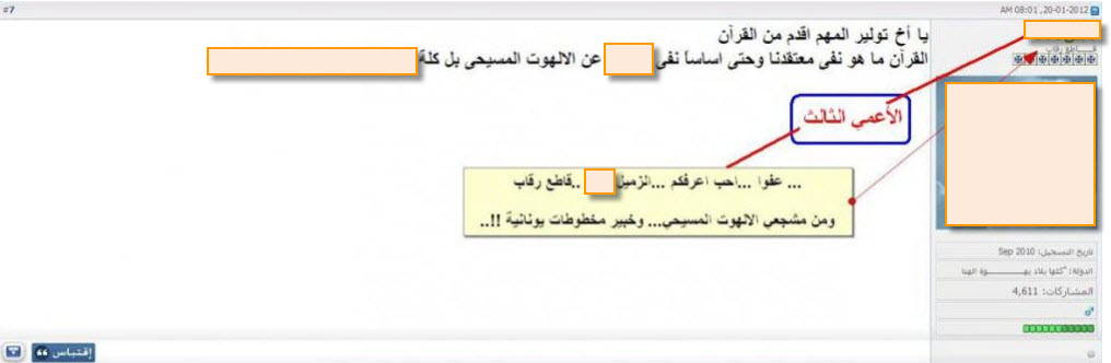 20.02.2012 الساعة 16:01 . و السبب : قوانين القسم : يُمنع ذكر أسماء المواقع و المنتديات التنصيرية أو المشرفين عليها.
