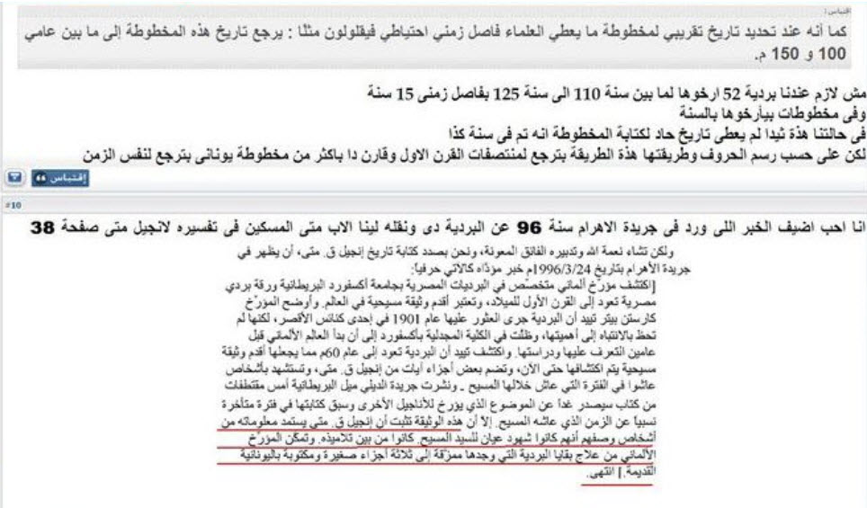 نُتابع بإذن الله ~~ تعليقات العميان ~~ الطريف أن الزملاء صدقوا كلامه وفكروا أن فيه ( صلبوت ) بجد خُد يا عم ... نموذج لتعليقات أحد العميان ينتظر تعليقات المسلمين على الحجة الدامغة اللي بتثبت صلبوت رب المجد !! صحيح : أعمى يقود أعمى >> كلاهما يسقط في حفرة ذلك الجاهل الأعمى ... الذي يجهل اللغات ... ويجهل الحقائق ... الحقيقة و النور أمام عينيه في قلب المشاركة و بيتحدى المسلمين !! لكنهم عميانٌ لا يبصرون !! لأ ... وبيشكره كمان ... ويدخل المشرف عشان يثبت الموضوع ...! المشرف ده شكله من نيجيريا ... هوساوي ..... ما بيفهمش العربي !! ويرد عليه كابتن ### بيعيط بحرقة ... ويقول ... الحقونا يا ناس : القرآن نفى ( الالهوت المسيحي ) لا مؤاخذة أصله من أشد مشجعي ( الالهوت المسيحي ) شفت التعليق ده ... ### .... مطبلاتي !!! قال يعني الواد فاهم في دراسة البرديات >> خبير !! الأساتذة عاملين فاهمين ...!! واحد يغني ... والتاني يطبل له !! بالمناسبة ... دي آخر ترنيمة عملوها مع بعض : يا طوطة يا طوطة ... هندخل الملكوت ومعانا المخطوطة ... بتأكد الصلبوت !! الحقيقة أن كل اللي علقوا على الموضوع شوية ... جهلة ... وعميان !! ليييييييييييييه ؟!! أقولك ليه ... ما فيش واحد فيهم فكّر يشغّل عقله ويبحث ويدور ويشوف الحقيقة إيه ليه بنقول إنهم جهلة وعميان ...؟ لأن علماء البرديات والمخطوطات اختلفوا في تأريخ المخطوطة : * ثلاث علماء من علوم البرديات : هارولد بيل ... و ... سكيت … و إي جي تيرنر أجمعوا الثلاثة على أن المخطوطة تمت كتابتها ... سنة 200 ميلادية * اتنين علماء : فيليب كمفورت ... و د . ب . باريت 1999 – 2001 ... ( اللي نقل عنهم الجاهل وهو ما يعرفش ... وبيقول كرستين ) أقروا أن البردية تنتمى لأواخر القرن الثانى و تحديدا من 150 الى 175 لأن فيها بعض الرسومات تنتمي للبرديات P/64/67 * العالم تشارلز ورث : قال : البردية تنتمي للبرديات P/64/67 و ضاف للمجموعة البردية رقم P4 وكلهم نفوا كلام العالم كرستن سنة 1994 ... اللي قال إنها تعود للقرن الأول و قالوا إن الكود مش نفس الكود الذي تمت به المقارنة للعالم كرستن يعني كلام كرستن غلط !!!! ... فشنك ... فرقعة علي الفاضي !!!! ست علماء غلطوه ....!!!!!!! السؤال دلوقتي يا أحباب : إيه غرض الموضوع ده ؟ ليه الكاتب بيستميت في الدفاع إنها مكتوبة في القرن الأول الميلادي ؟ عارف ليه ؟ المزيد من مواضيعي