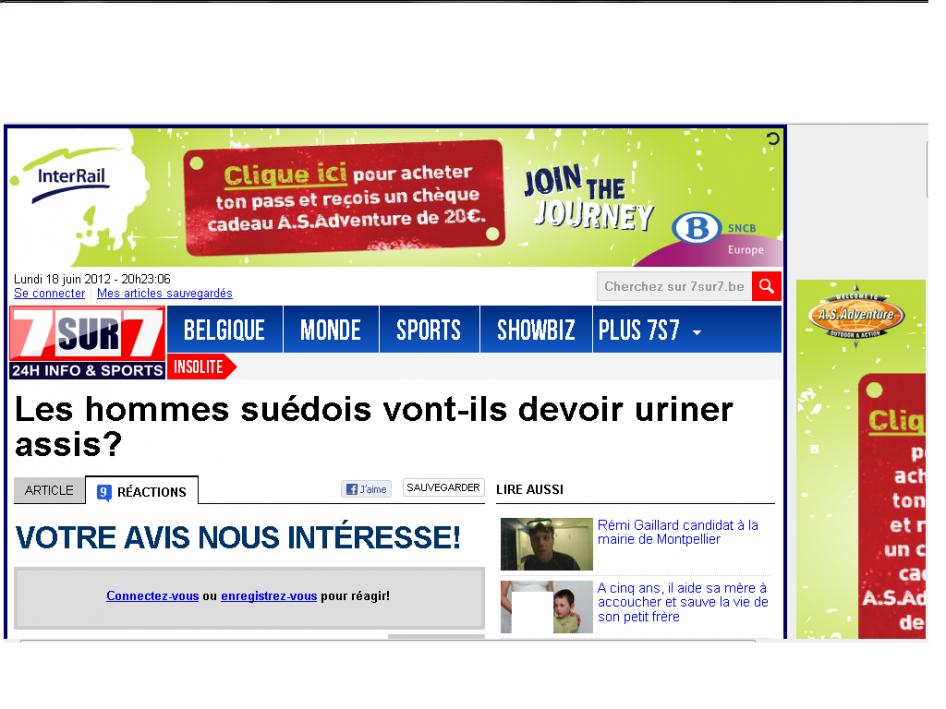 ترجمة : اقتراح سن قانون يُجبر الرجال على التبول جالسين يؤدي الى حياة جنسية سليمة و طويلة . ![]() المصدر : 7sur7.be الآن هل من مُعترض ؟؟؟؟ للمزيد من مواضيعي