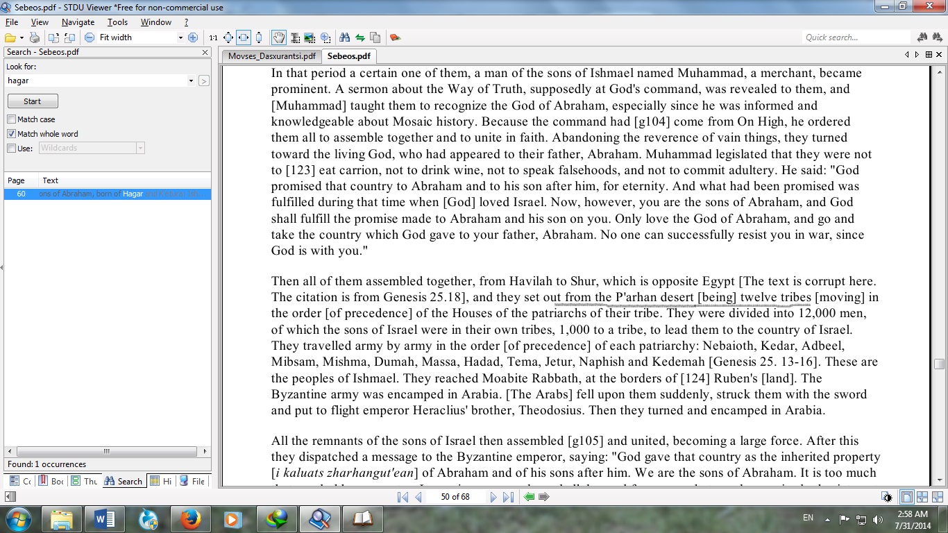 بسم الله الرحمن الرحيم و به نستعين و الصلاة و السلام على النبي الهادي محمد صلي الله عليه و سلم ظهر في القرن السابع قس يدعى سيبيوس sebeos عاش في بلاد أرمينيا ، سجل لنا تاريخ أرمينيا و لحسن الحظ كان شاهد عيان على الفتح العربي لبلاده ... قدم لنا دليلا جديدا عن موقع " برية فاران " التي اتخذتها هاجر و ابنها عليهما السلام ملاذا و سكنا ... يقول : " تجمعوا كلهم معا ، من حويلة إلى شور التي قبالة ( قصاد يعني ) مصر ، و انطلقوا من برية فاران ، اثنى عشر قبيلة ....... طبعا الحديث عن جيوش العرب التي اكتسحت الدولة الرومانية و الدولة الساسانية و للمزيد يمكنك تحميل الكتاب و هو يحتوي 68 صفحة ..... و لكنها مشحونة بمعلومات يرفضها اليهود و النصارى معا ...... و عليهم ان يثبتوا عكسها لو استطاعوا . رابط الكتاب https://archive.org/download/SebeosH...nia/Sebeos.pdf للحوار بقية للمزيد من مواضيعي