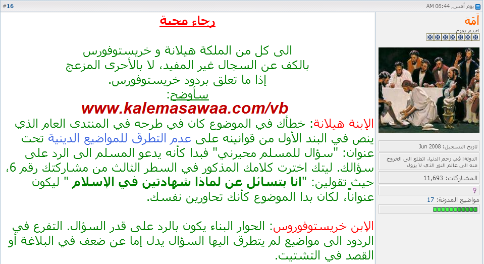 | كشف أكاذيب المنصرين و المواقع التنصيرية يُمنع ذكر أسماء المواقع و المنتديات التنصيرية أو المشرفين عليها. |