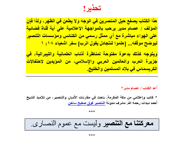 ![]() الكتاب: حقيقة بابا نويل و الكريسماس - طرطور بابا التثليث فوق رؤوس الموحدين الكاتب: أ/ عصام مدير مقتطفات من الكتاب: صيغة الكتاب: PDF حجم الكتاب: 7.3 MB التحميل : من هنا ![]() (إضغط كليك يمين ثم حفظ بإسم أو Save Target As ، أو عن طريق استخدام برنامج التحميل الخاص بك) جزى الله الكاتب خير الجزاء للمزيد من مواضيعي