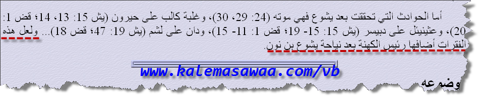 ______ يزعم النصارى أن كاتب هذا السفر هو يشوع نفسه ولكن . . . . هل حقا كتب يشوع هذا السفر ؟ هل خلا هذا السفر من عبث العابثين ؟ الواقع يجيب على هذا التساؤل ففى نهاية سفر يشوع خبر موت يشوع !! فهل كتب يشوع هذا الكلام ؟ (Alvandik)(Joshua)(Jos-24-29) (C'était après sa mort, Joshua Ben-Nun Abdul Rab un cent et dix ans). الترجمة : (الفانديك)(يشوع)(Jos-24-29) (. وكان بعد هذا الكلام انه مات يشوع بن نون عبد الرب ابن مئة وعشر سنين.) (Alvandik)(Joshua)(Jos-24-30) (Enterré dans la zone frontalière Reine dans timnathserah dans Mount Ephraim, au nord de Mont gaash). الترجمة : (الفانديك)(يشوع)(Jos-24-30)(فدفنوه في تخم ملكه في تمنة سارح التي في جبل افرايم شمالي جبل جاعش. ![]() للمزيد من مواضيعي